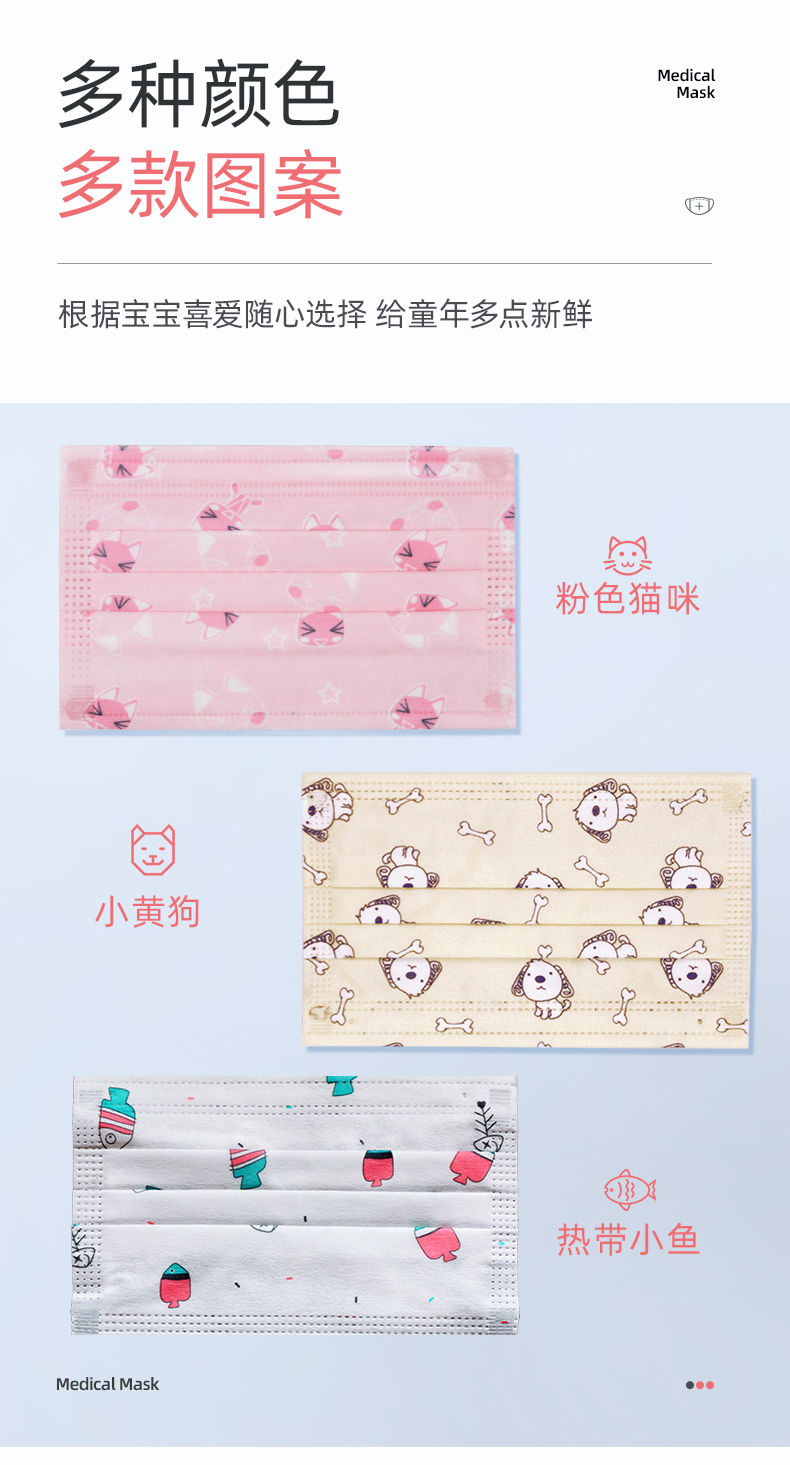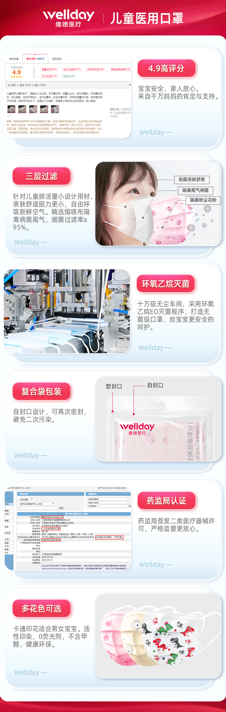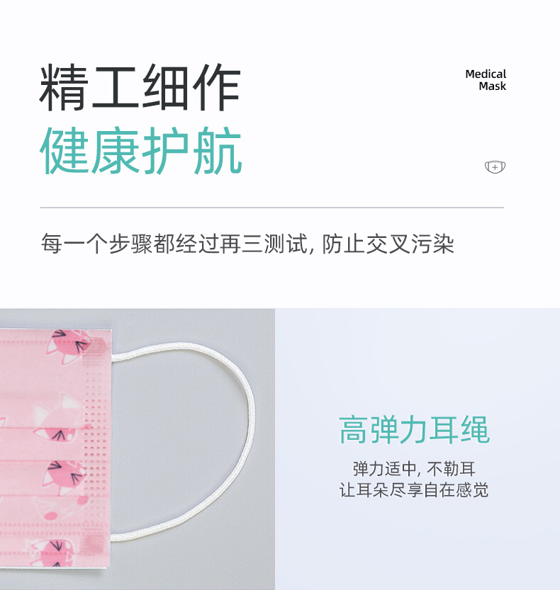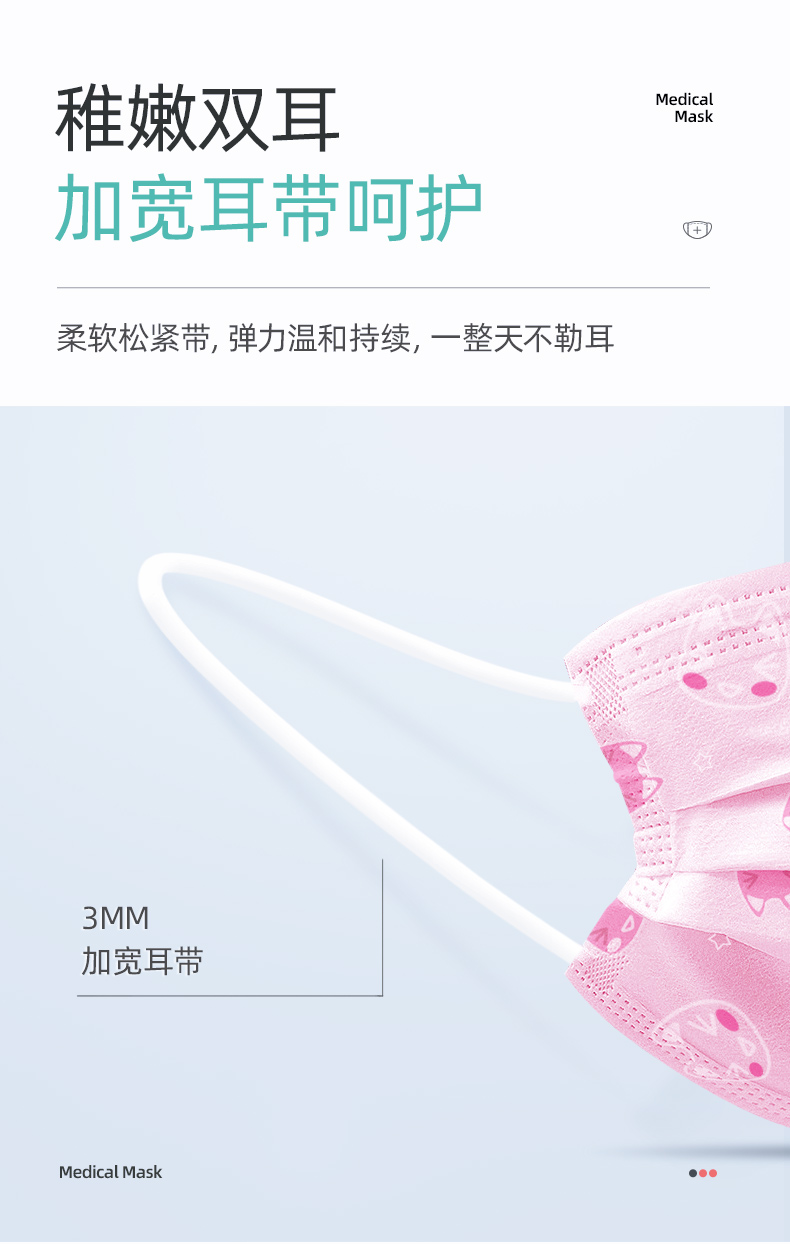 专用的儿童口罩,经过灭菌处理,药监认证,医用外科品质,赣械注准20202140043,执行标准号:YY0469-2011,环氧乙烷灭菌安全放心,维德甄选bfe>95%熔喷布,隔离微生物病菌,三层过滤,静享呼吸,牢固防脱,点焊技术。