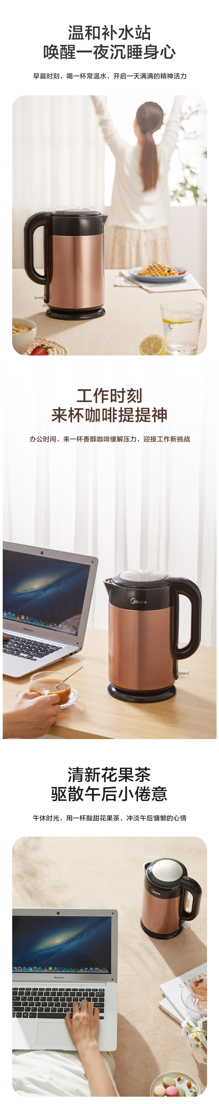这款美的MK-S319C02电热水壶,采用的就是304食用级不锈钢内胆,安全健康。1800W大功率,3分钟沸腾,烧水快。