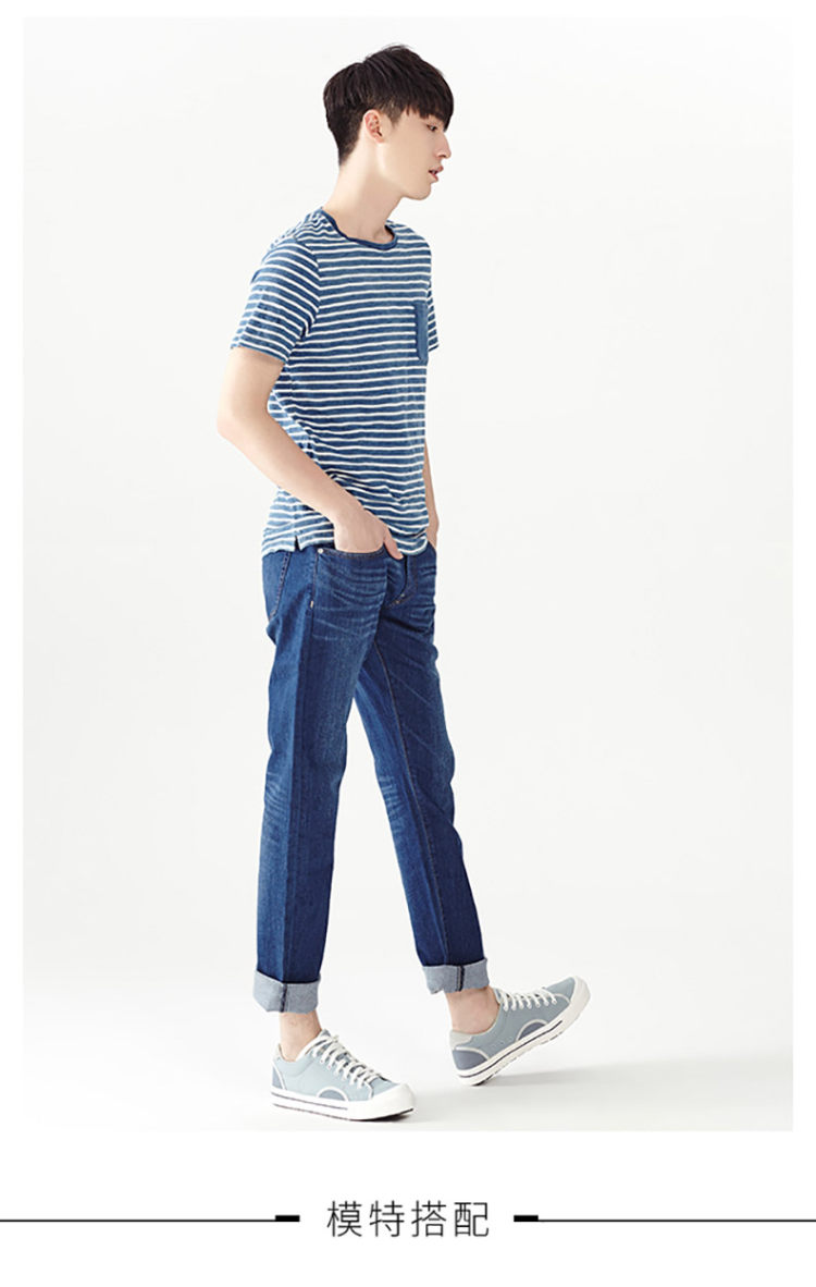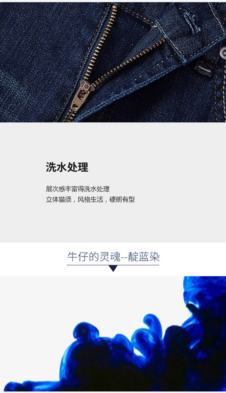 这款牛仔裤甄选优质舒适面料,强度高、光泽好,面料表面光滑,触感舒适,莱卡弹力纤维,弹力适中不妨碍运动。猫须做旧磨白,休闲干净,品质YKK拉链,细节精致。
