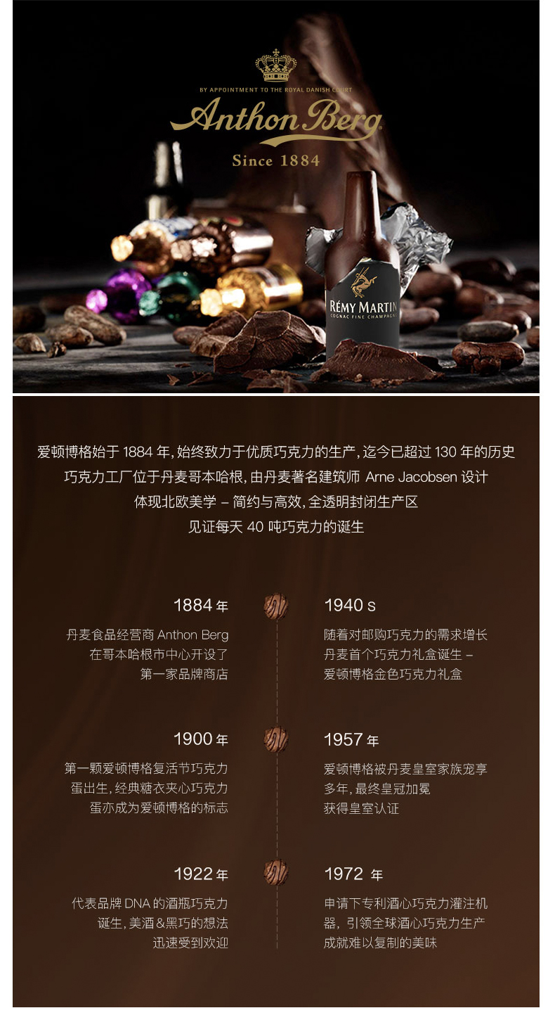 天猫Shopall24海外专营店,4-19日 过年不打烊,¥69元 新年价,-30元优惠券,=39元 到手价,310g组合装,纯可可脂巧克力。丹麦 Anthon Berg(爱顿博格)巧克力已有125年的历史,历来是欧洲皇室贵族的御用精品,是酒心巧克力的先祖。