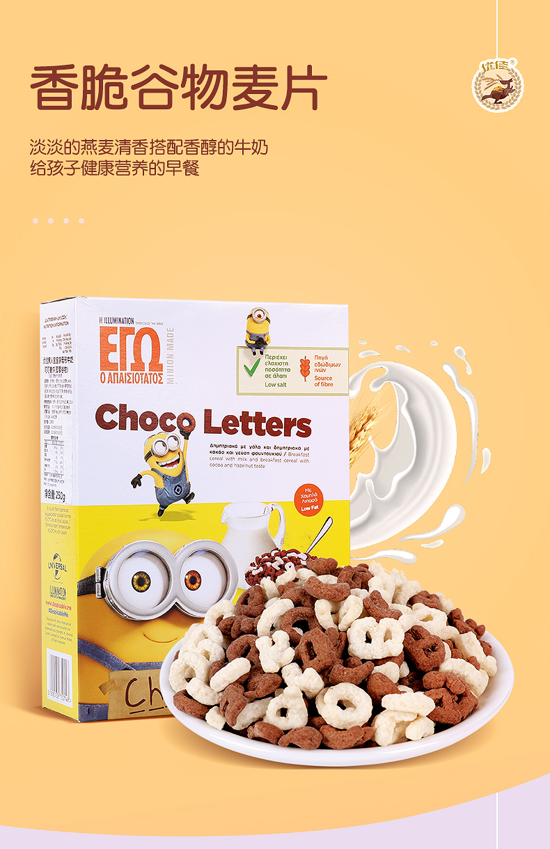 小黄人宝宝字母形牛奶可可麦饼 250g(即食谷物)