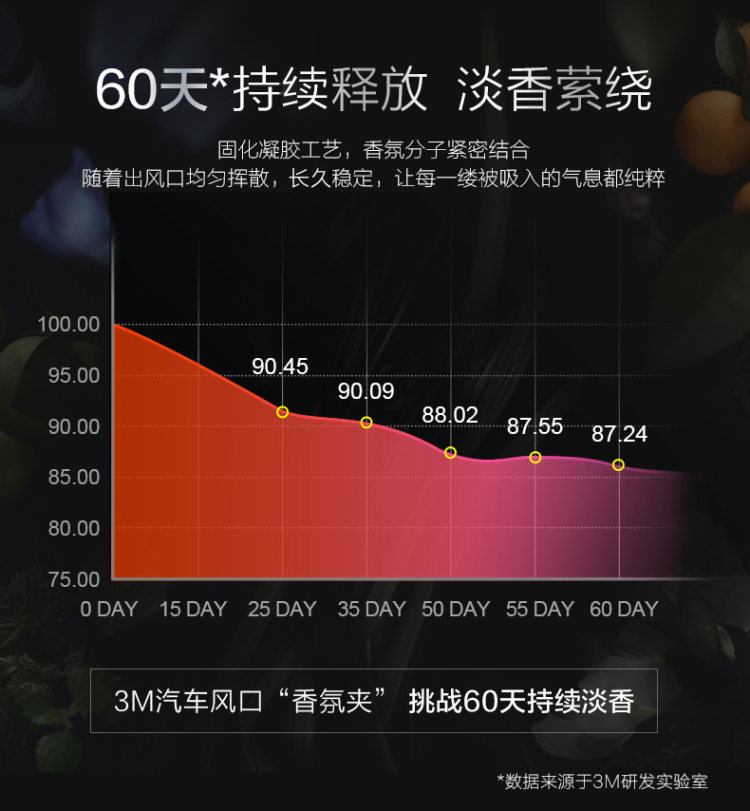 独特的固化凝胶工艺,能让香氛分子紧密结合,8+1+2的立体散香孔,可以随着出风口均匀挥散,长久稳定,单盒能持续使用60天,规格是3.2g。