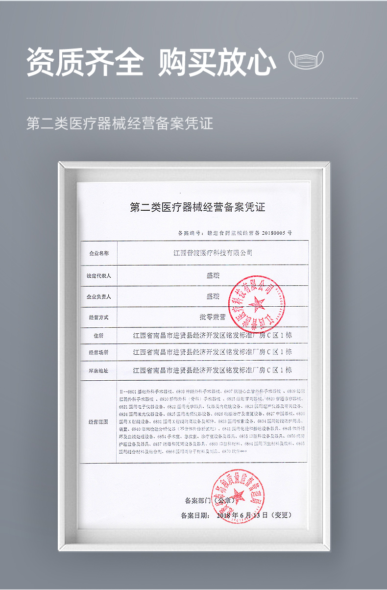 维德医疗 一次性医用外科口罩,执行标准号为YY0469-2011,二类医疗器械注册,经环氧乙烷灭菌,可进手术室级别,防止病原体微生物、液体、颗粒物等的直接投入,内外无纺布+熔喷布材质,细菌过滤率≥95%,对高压飞溅液体有防渗透作用。药监认证,医用品质。