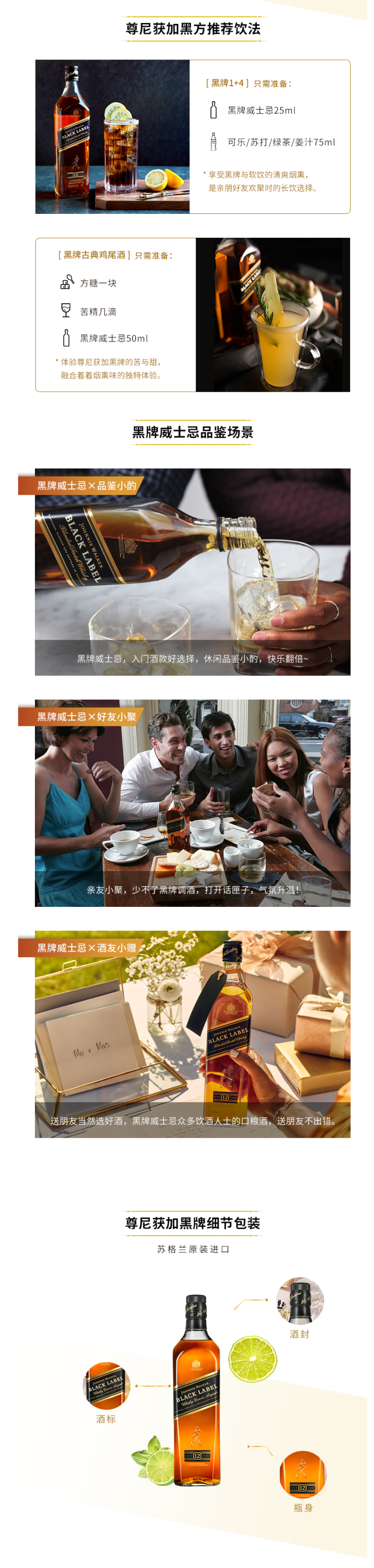 黑牌是尊尼获加最负盛名的一款,也是性价比最高的一款威士忌,12年以上的橡木桶陈酿,经由百年配方调配。