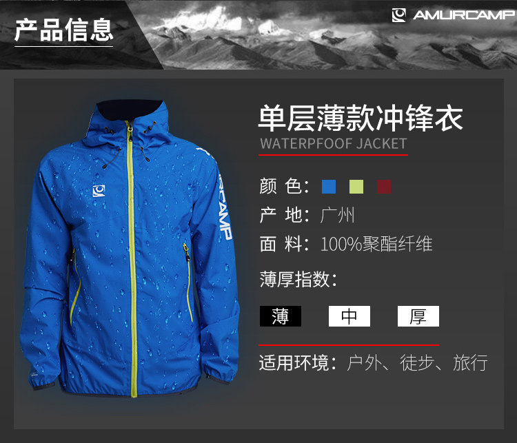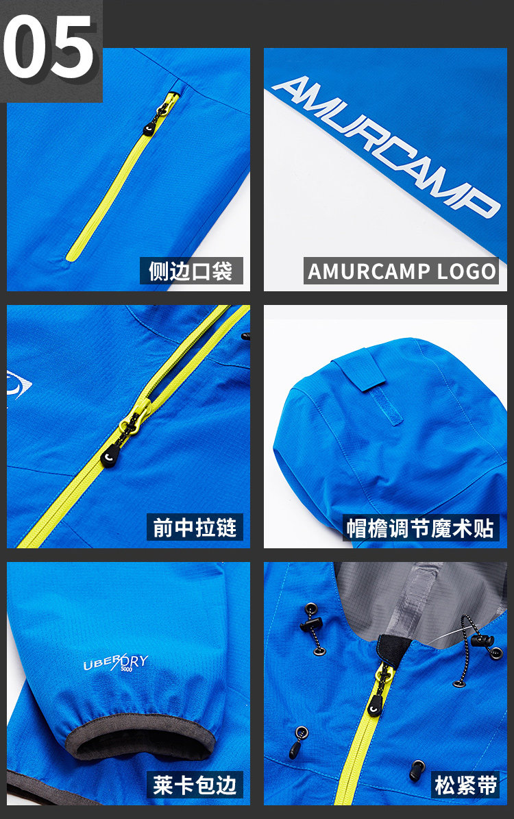 Amurcamp这款冲锋衣叫「灰膜」,是单层薄款,定位高透气的暴雨级冲锋衣,防水指数10000mm可直接当雨衣穿。使用高强度抗撕裂面料,所有缝线位置都经过热封压胶处理,不会从针孔渗水。主拉链和侧边口袋拉链都是防水的。