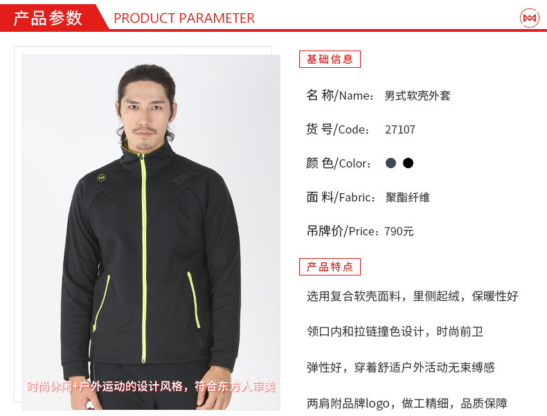 在款式和细节上,合身版型上身不拖沓,领口内和拉链是撞色设计,时尚前卫。弹力袖口,防止冷风灌入。口袋拉链彩膜装饰,提升拉链牢固度,同时不易进水