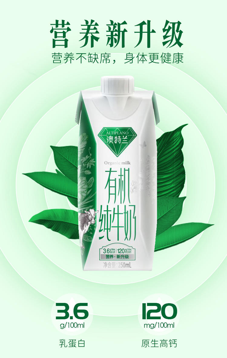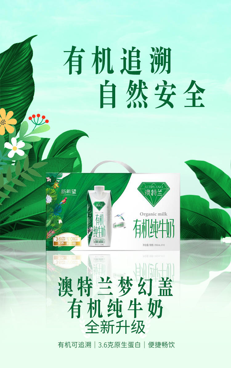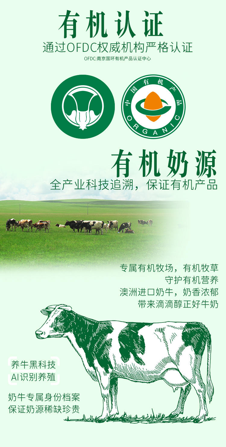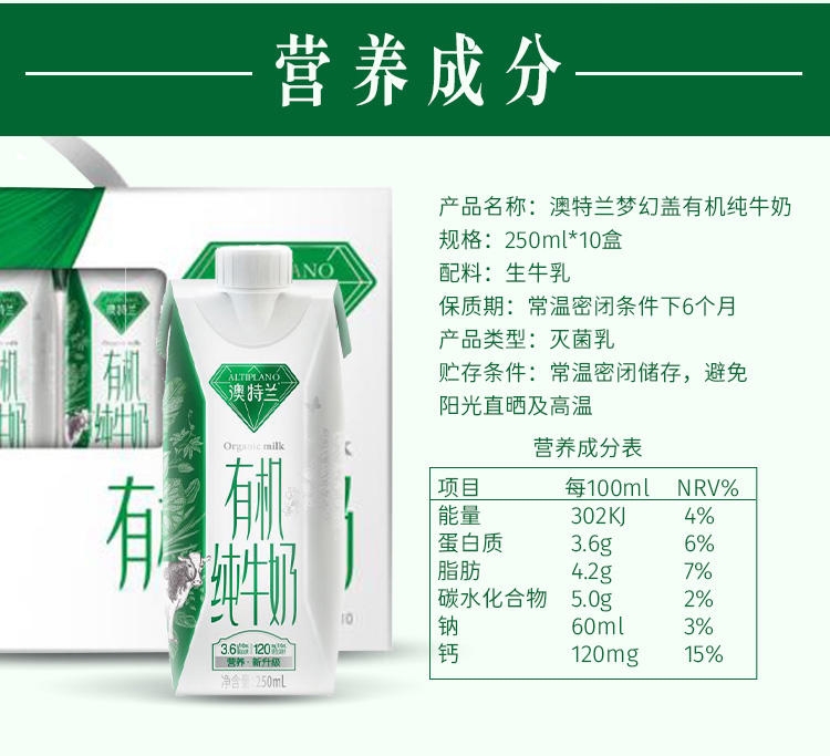这款新希望 澳特兰 梦幻盖有机纯牛奶,奶牛、牛奶全程追溯,经过OFDC权威机构的严格认证,是纯有机奶,每100ml含3.6g原生蛋白质、120mg原生钙,补充身体所需。