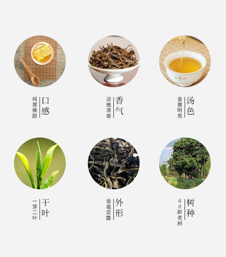 此款昌宁红滇红茶,来自60年龄的老茶树,干茶条索紧实,肥壮而油润,茶汤泛金圈,口感醇厚伴有蜜糖香气,温润回甘。叶底舒展、光泽饱满。规格:120g。
