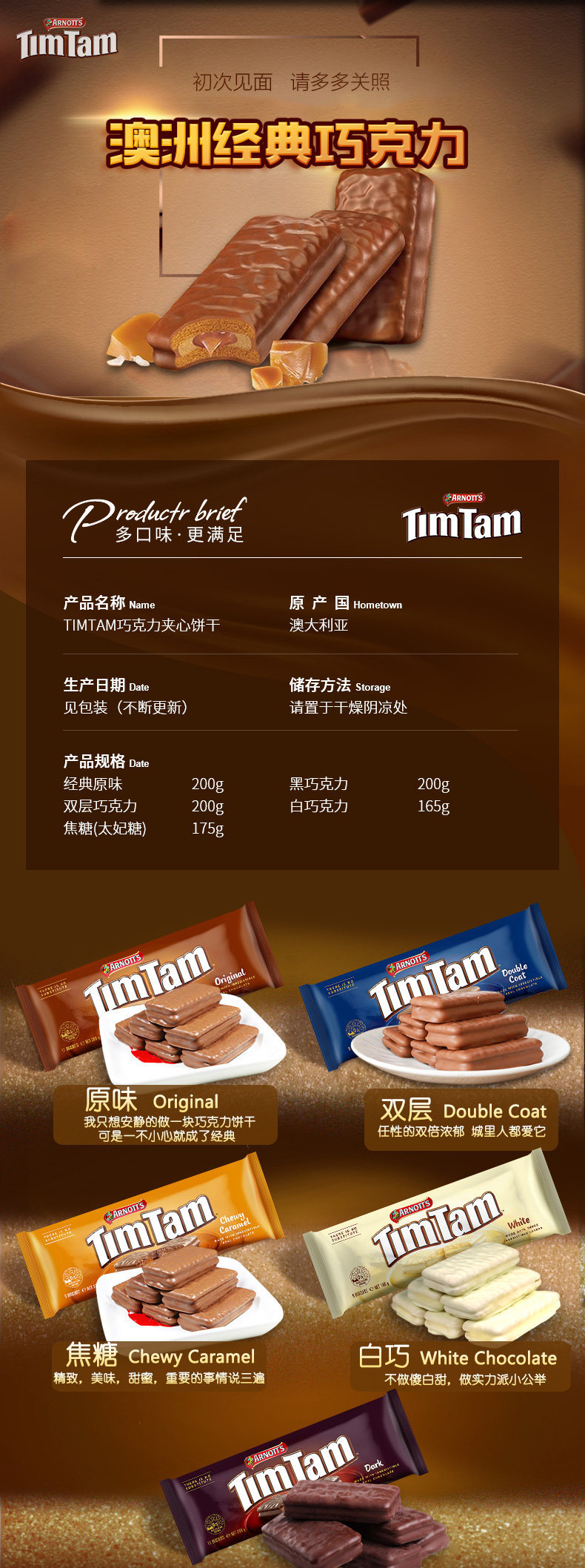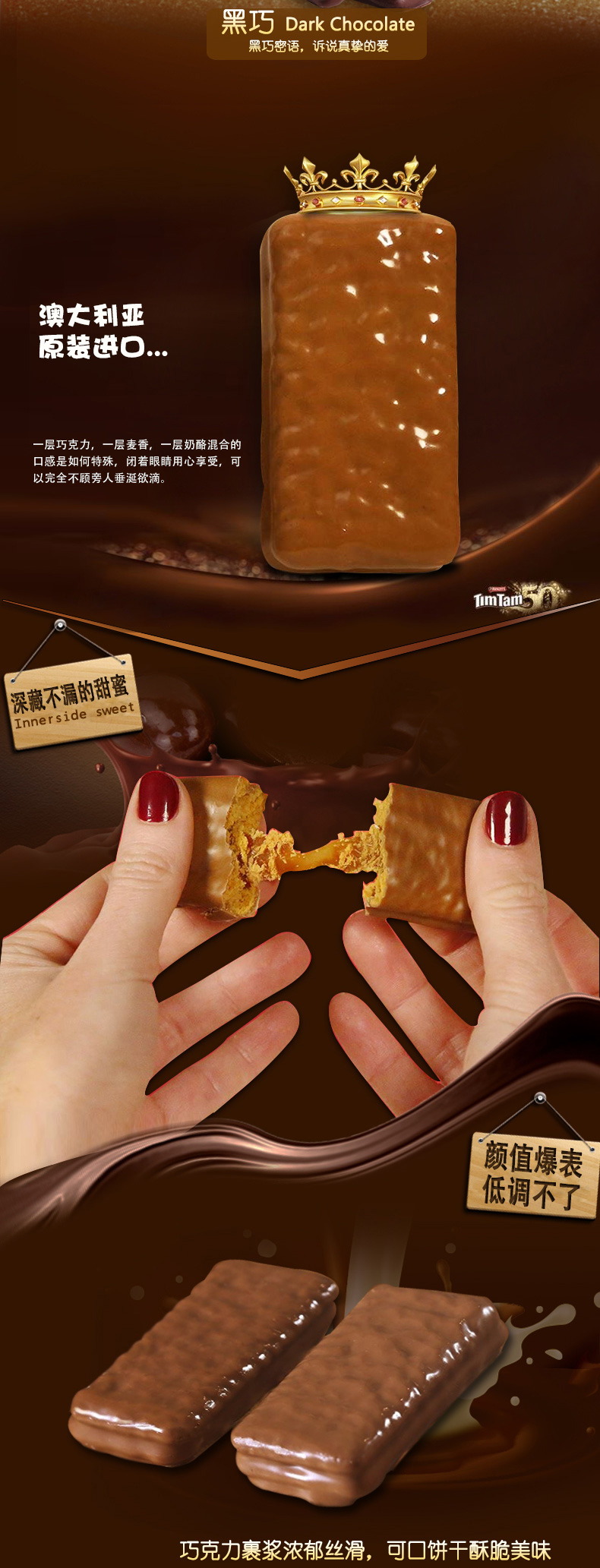 TimTam被誉为世界上最令人难以抗拒的巧克力饼干,同时也是澳洲的国民巧克力饼干,在澳大利亚,每2个家庭中就有1个家庭长期囤TimTam,非诚勿扰中,来自澳洲男嘉宾带的TimTam饼干也得到了女嘉宾和评委们的肯定。