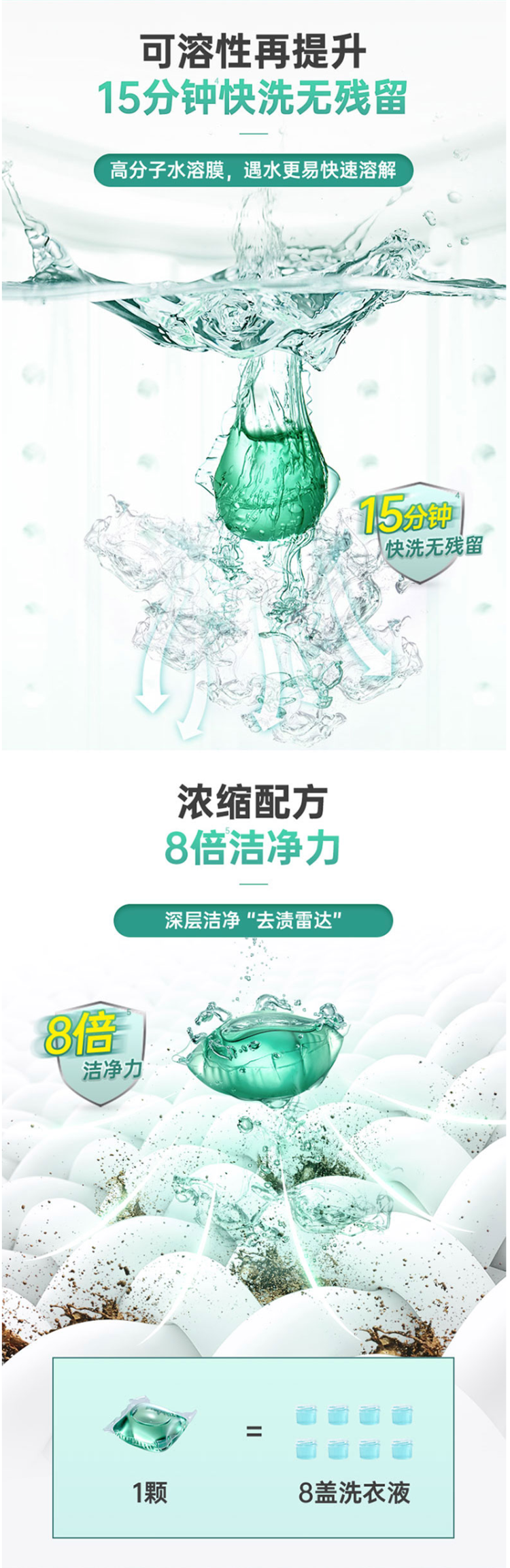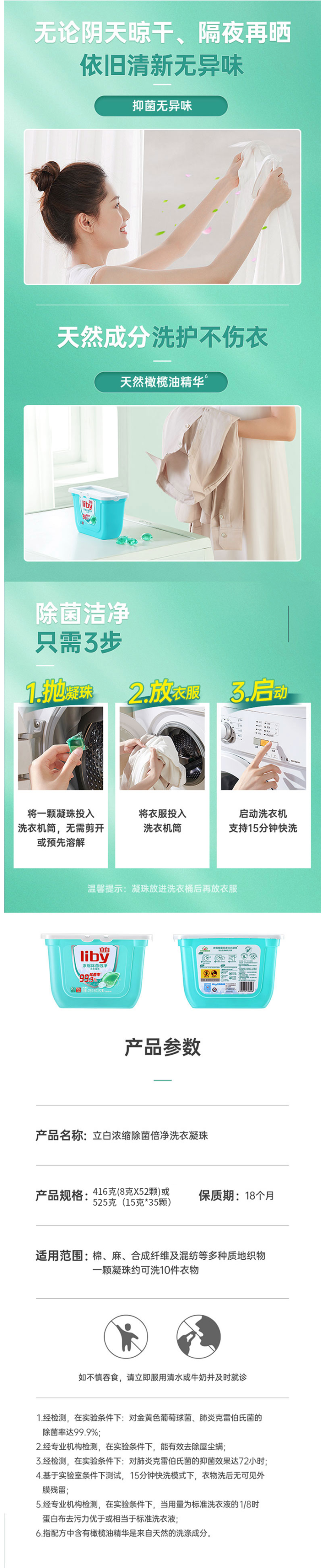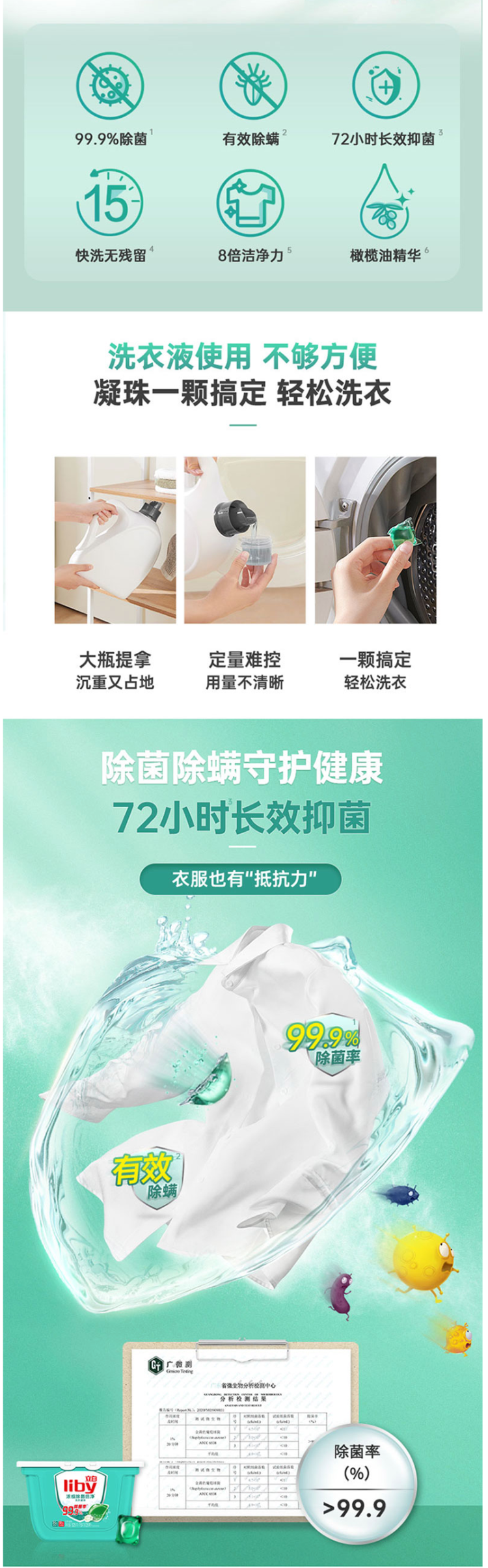 这款立白 天然倍净浓缩洗衣凝珠,专为机洗设计,植物活性剂配方,深层洁净,保护衣物纤维,水溶性外膜,低温也能溶解不残留,省心简单实用,8倍洁净力,99%除菌,高效去污,快洗无残留,洗后柔顺亮丽,清雅幽香,去除异味,留香悠长。适用于棉麻、混纺、合成纤维等质料衣物。