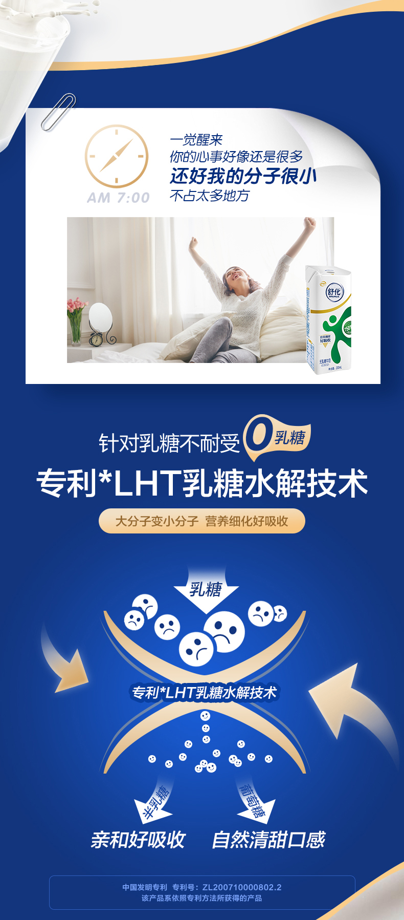 无乳糖牛奶,就是在纯牛奶中添加了乳糖酶,配合乳糖水解技术,帮助人体分解乳糖。同时无乳糖牛奶与纯牛奶通用有营养,可溶性钙、蛋白质等成分含量几乎是一样多。