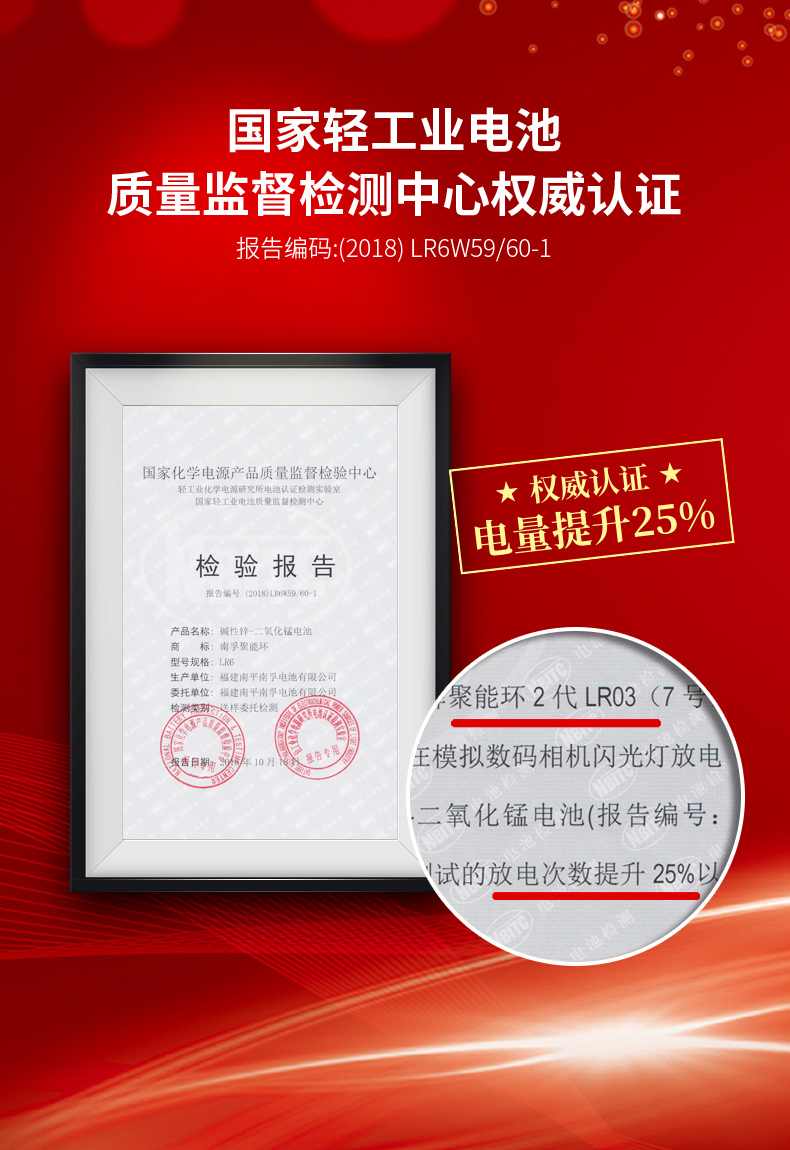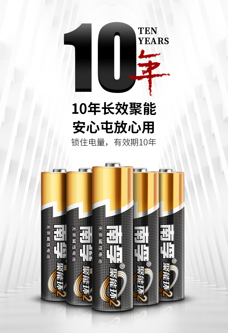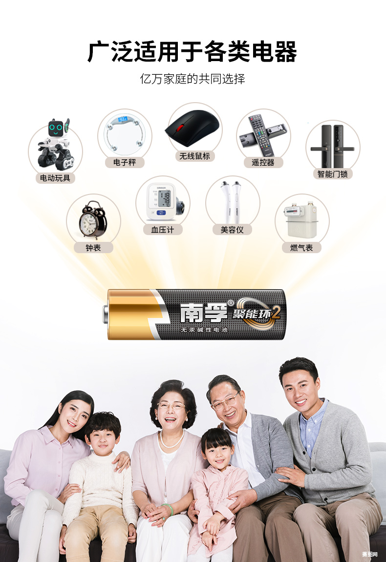 这款南孚 聚能环2代电池,电量较以往提高了25%,高能正极环融合精导石磨,导电性能好,降低无效损耗,电力是普通电池的6.6倍,无汞无镉,双层防漏,自动防爆,适用于各类电器。