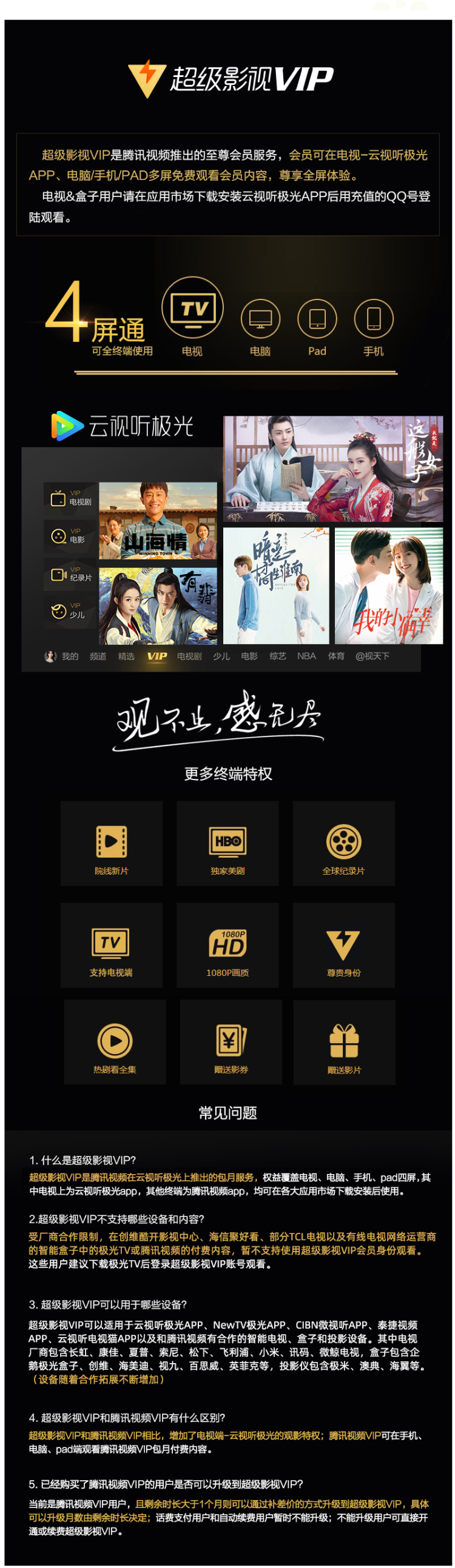 腾讯视频超级影视VIP(正价488元/年):支持 手机、平板、电脑、电视TV