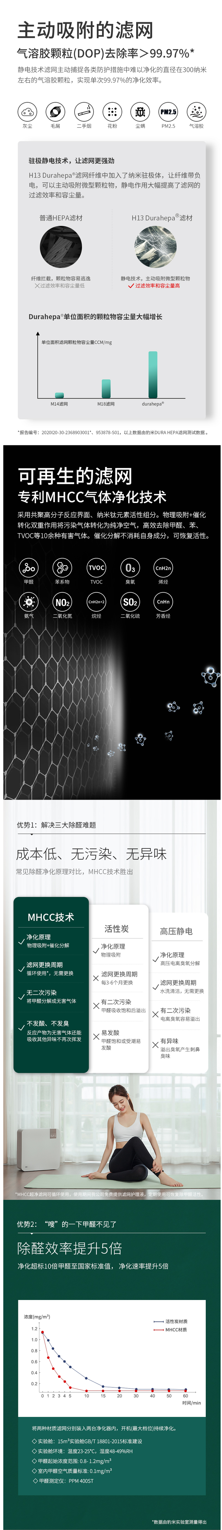「霾霸版」使用了新款豹米联合3M研发的M14级DURA-HEPA滤网,这是一种高容尘量滤网,是国标P4标准容尘量的三倍,同时对PM2.5的净化能力更强,同时增强了颗粒更小的PM0.3颗粒的净化。
