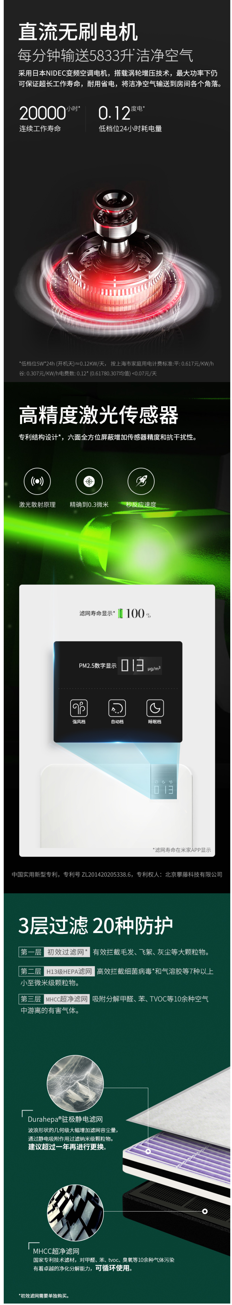 3、传感器:传感器分为激光的,和普通的,激光的更精准,控制风扇有合理的转速,夜里低速不吵,雾霾天开足马力。