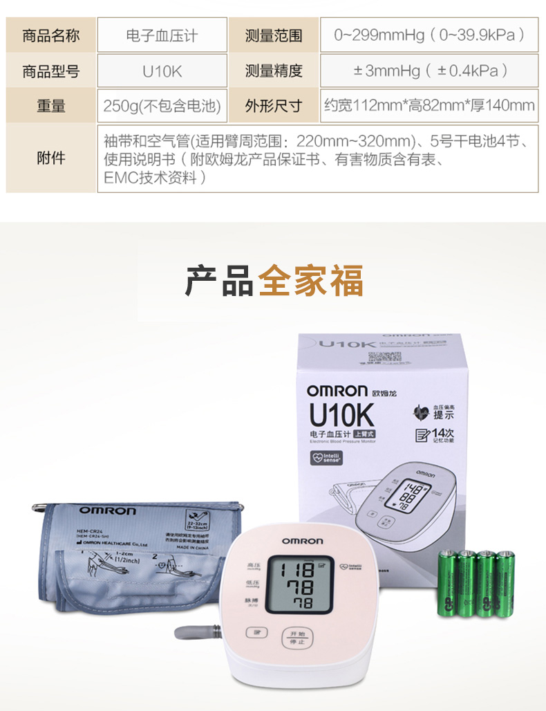 这款欧姆龙 U10K 上臂式电子血压计,是刚上市的新品,打破一惯的黑白灰三色设计,采用雅致的香槟金色,流畅的弧曲线设计,360°圆润造型,颜值更高。一键启动测压,使用非常简单,高清显示大屏显示。