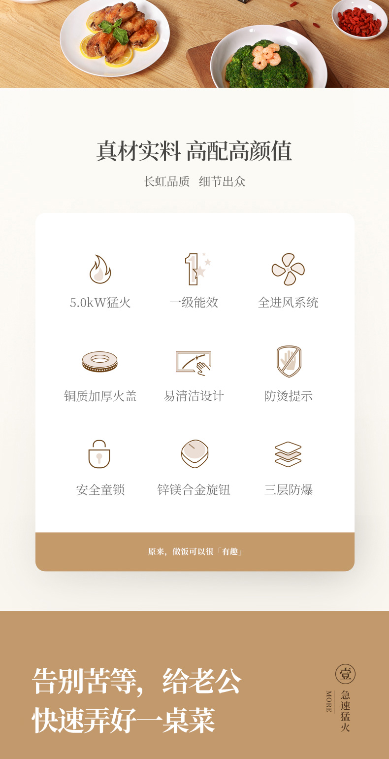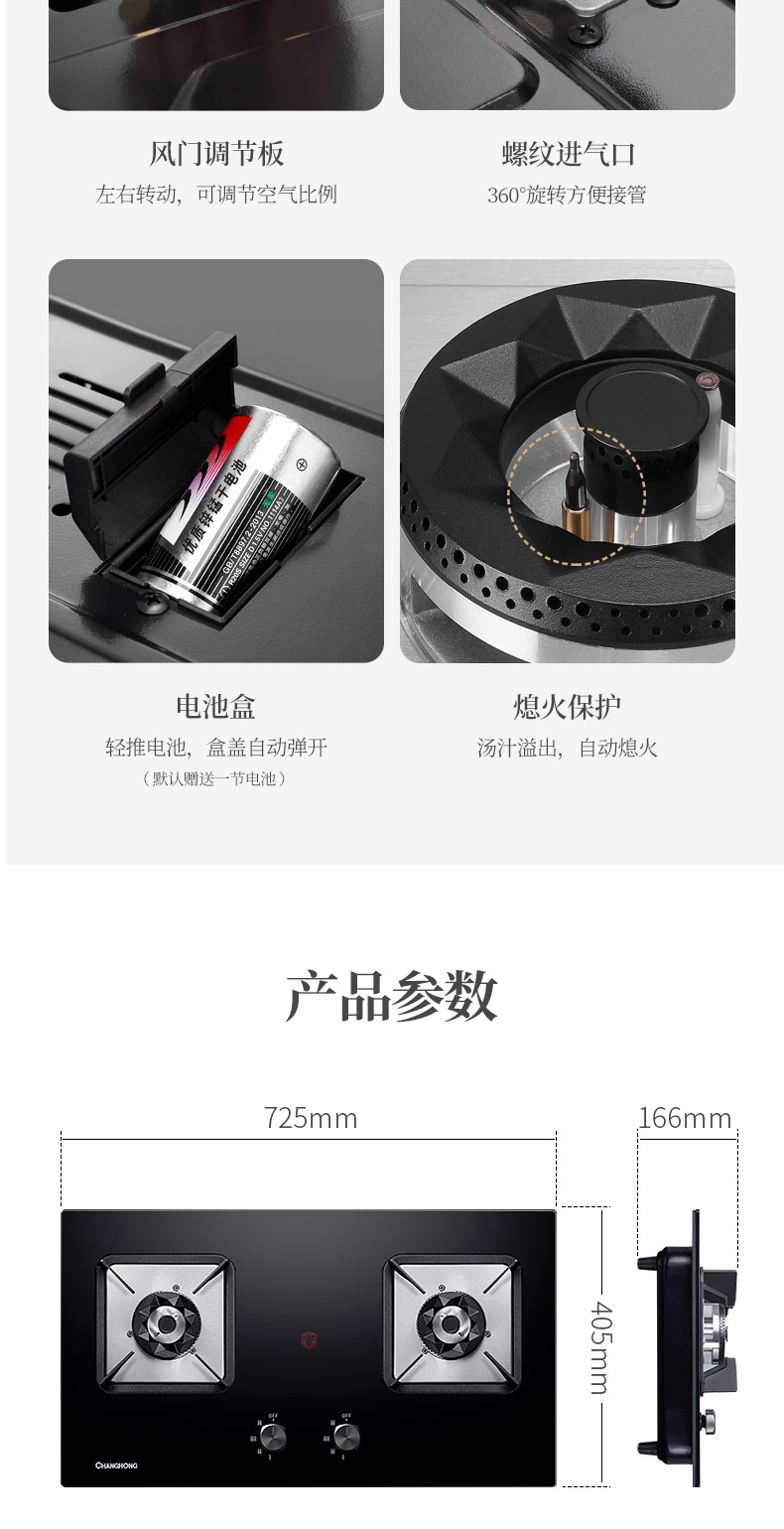天猫长虹优盟专卖店289元,领取40元百亿补贴专 享券,实付249元到手,超便宜的大牌燃气灶。第一款此价,4.5kw,120mm叠瀑式燃烧器,单位燃烧面积更大,火焰与锅底接触面大,燃烧 充分。三层防爆钢化玻璃面板,耐高温,易清洗保持光泽。安全保护旋钮,防止儿童误碰。
