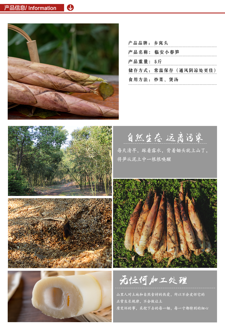 天猫乡窝头旗舰店39.8元,可领10元优惠券,实付29.8元到手,新鲜春雷笋,产地是临安天目山,所有竹笋都是每天清晨现挖,下午打包发货。现挖的笋上还有点泥土,会切除部分老根以保持笋的水分不会流失太多,最大程度保存笋的鲜嫩。规格:5斤