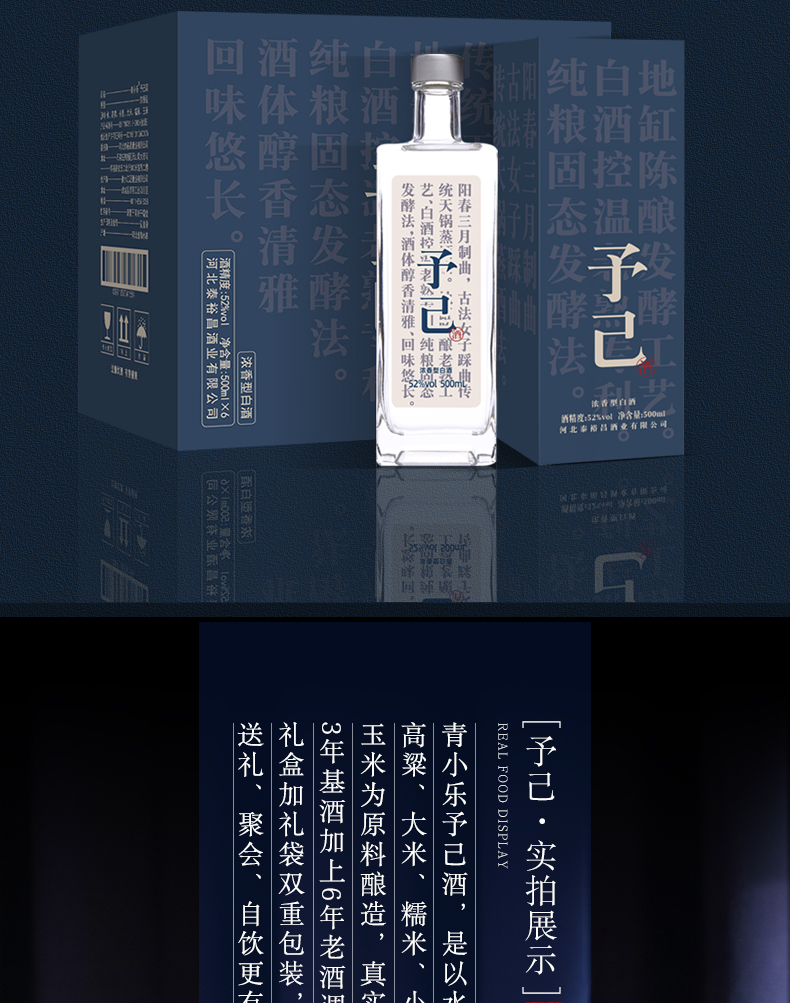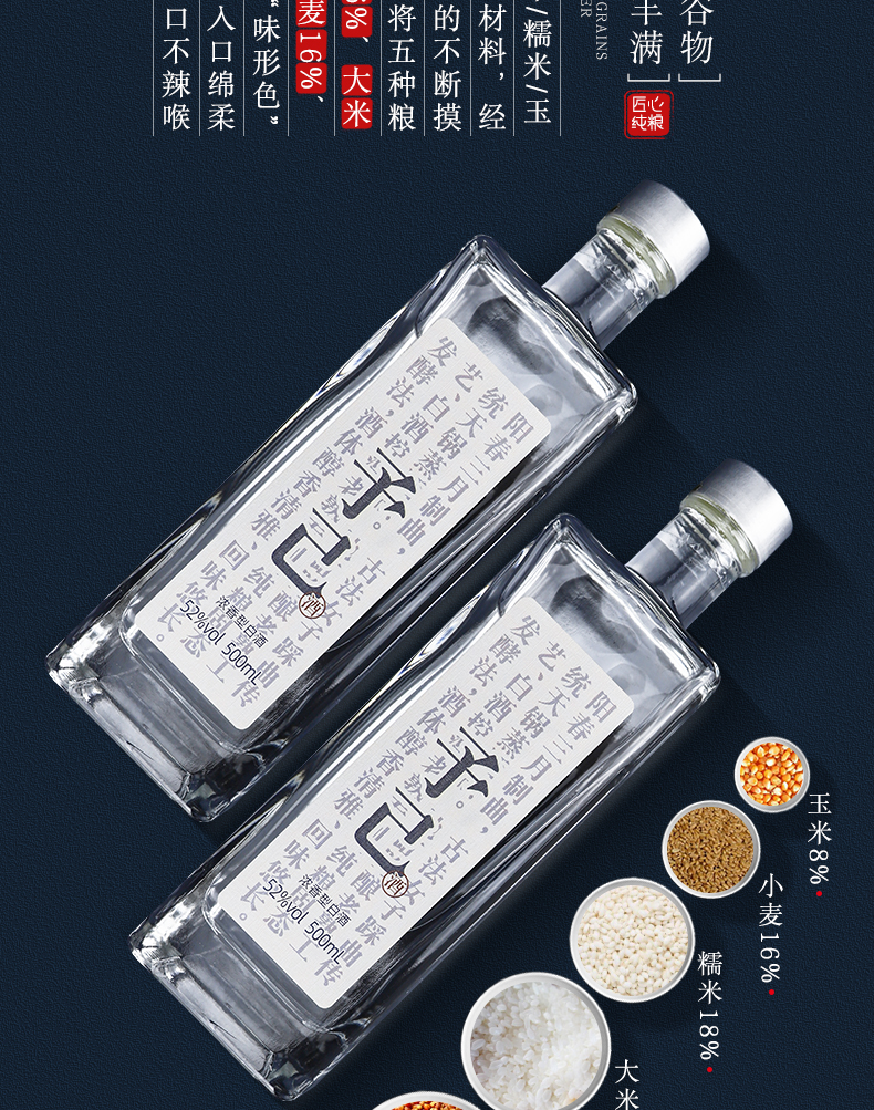 这款青小乐予己浓香型白酒,由衡水义庆隆酒业集团衡水江源酒业有限公司出品,以高粱、小麦、大米、糯米、玉米为原料,遵循古法,采用非物质文化遗产制曲工艺,手工酿造而成,醇香清雅、醇厚甘冽,回味悠长,酒精度52%vol,净含量500ml/瓶,足量1斤。