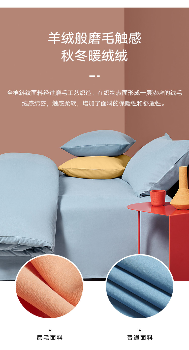 这一款四件套,选用优质新疆阿瓦提长绒棉,长达3000小时以上全年日照,棉纤维细长;采用40支精梳纱合股并捻工艺,140*100面料,真正达到240根,手感更柔顺爽滑。A类母婴级安全标准,无甲醛、无荧光增白剂、更柔软、更光滑、更细腻,裸睡也舒心。轻磨绒工艺,使面料柔软丰盈,增加了保暖性,秋冬触手生温。