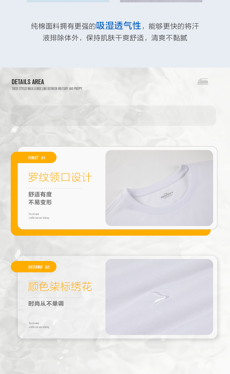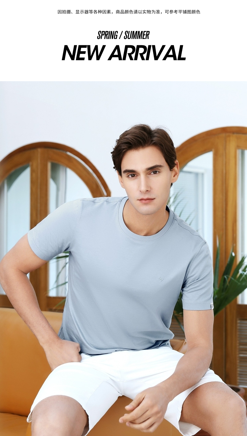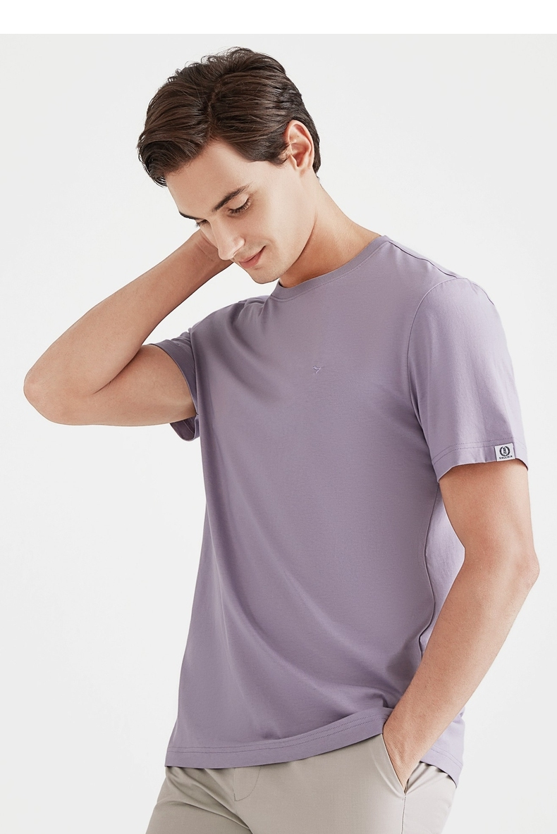 这款T恤,严选品质纯棉面料,棉纤维长,布面更加紧密且柔软,吸湿透气,合体版型,满足了贴身穿着的亲肤舒适效果,螺纹领口,舒适不易变形,顺色柒标绣花,时尚不单调,彰显大牌品质,共有九种配色,商务休闲时尚百搭。
