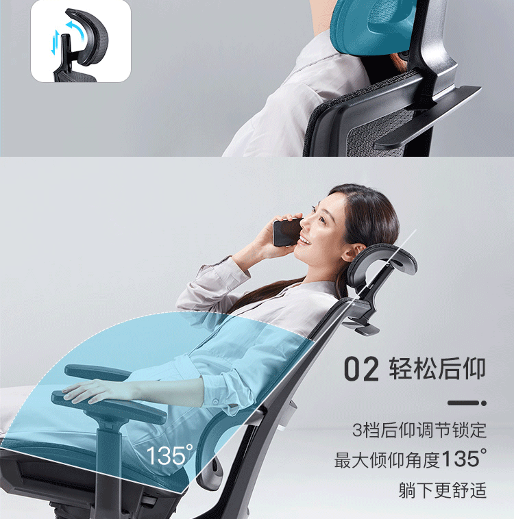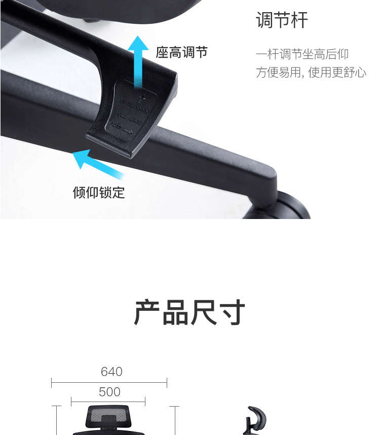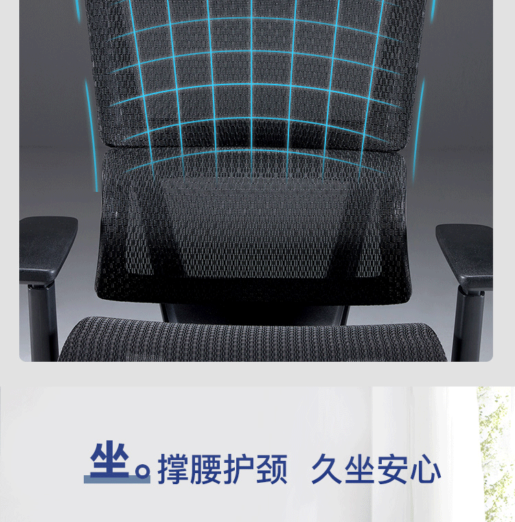 这款座椅的椅身选择的是高弹力进口网布,久坐也能保证透气舒适的坐感,S型曲线的椅背设计可以很好的贴合腰部和臀部曲线,支撑给力,随心调节的5段倾仰锁定椅背久坐不累,也可以通过阻尼调节器根据自身体重和坐姿调节椅背倚靠时的阻力大小,座椅的高度可在上下6cm范围调节。