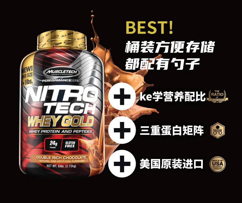 美国原装进口,经典金装正氮蛋白粉,三重蛋白矩阵,均衡合理提供氨基酸量,加强肌肉蛋白合成代谢,让肌肉纤维组件增大;添加肌酸,能更好合成肌动蛋白和肌凝蛋白使肌前纤维增多变粗,进一步提升肌肉的爆发力和持久性。蛋白粉是适合偏胖或者是体型正常的人吃的增肌塑形。
