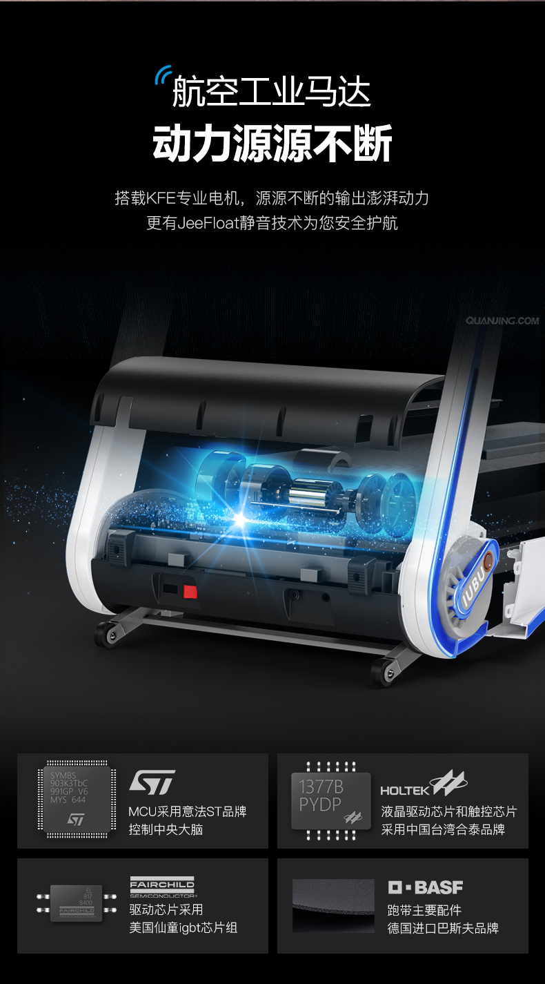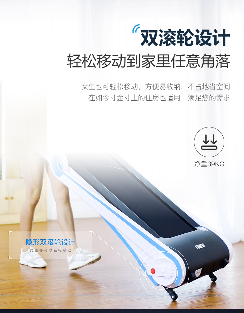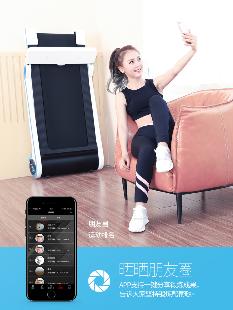 搭载KFT专业电机,动力源源不断,最大承重120KG,不用担心他扛不住你的体重。配备有0.7m长的磁性安全线,只要将其拉离机器,跑带立刻快速停止转动,避免对人体造成伤害。