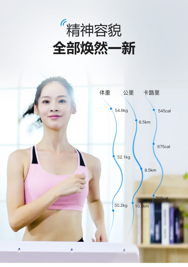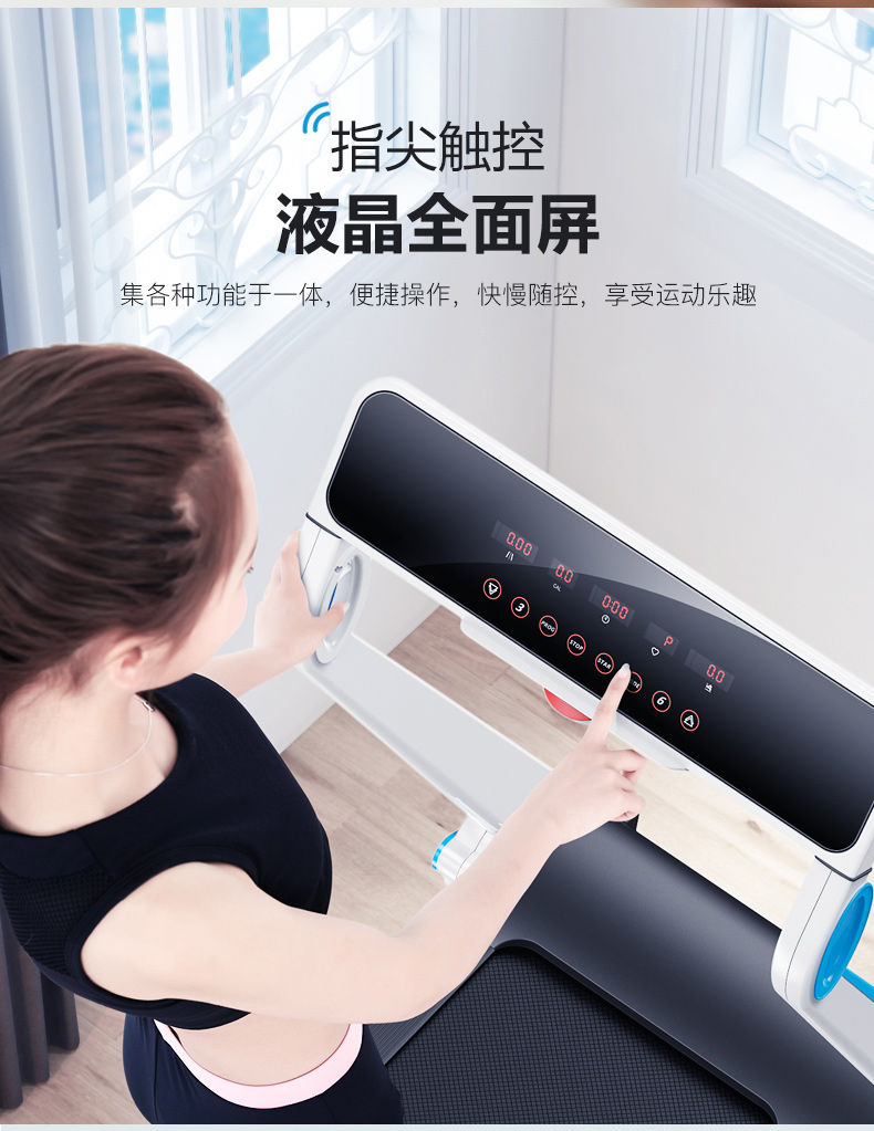 一体化机身,NOTE触摸液晶全面屏,显示屏上能数字化显示各种跑步数据,包括卡路里、时间、距离等,集各种功能于一体,操作便捷。