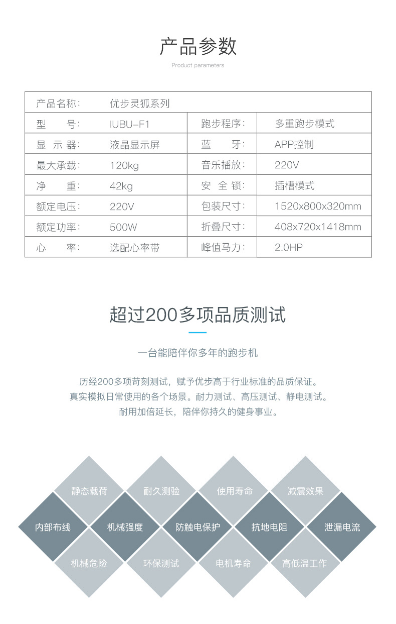 这款优步 灵狐 lUBU-F1智跑版 可折叠家用跑步机,一体式设计,免安装拆箱即可使用,折叠后仅地不到0.2㎡,非常适合居家使用,经过国家3C认证,质量安全靠谱。