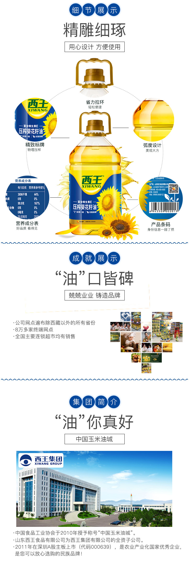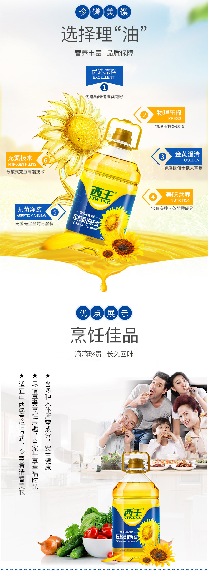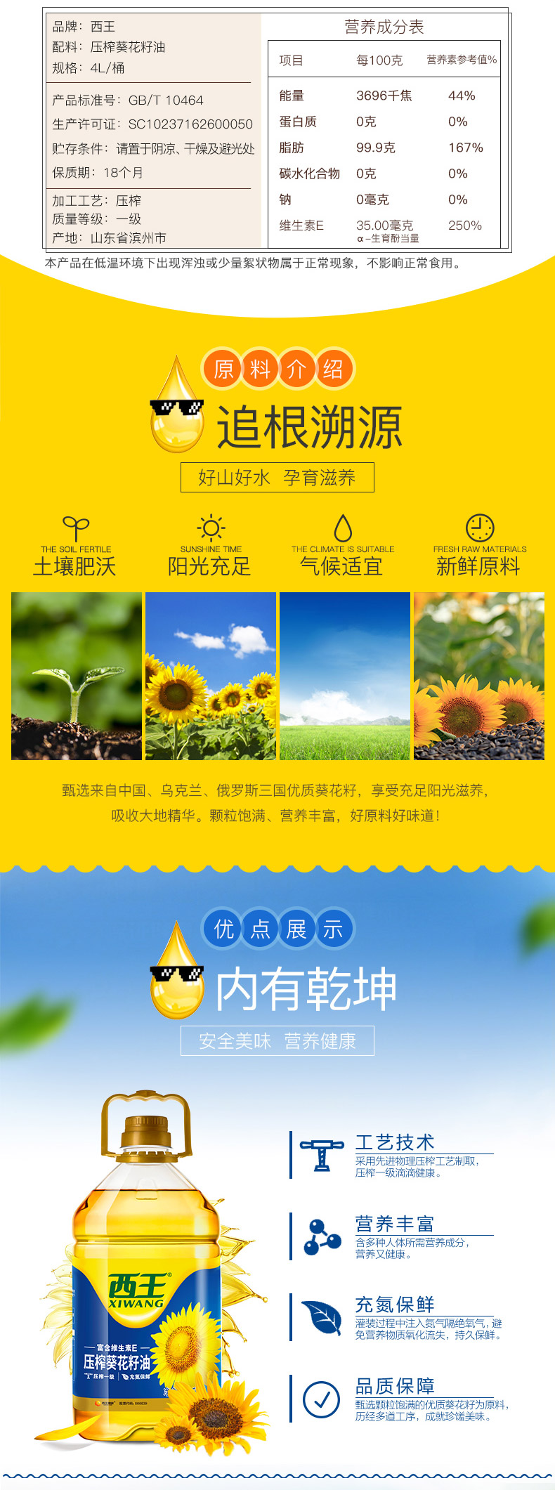 西王是国内专门生产玉米油的品牌。此款西王葵花籽油优选来自中国乌克兰以及俄罗斯优质饱满葵花籽,纯物理压榨,富含维生素E,营养丰富。加热后有淡淡玉米清香,油烟少不刺鼻,炒菜比较好吃。