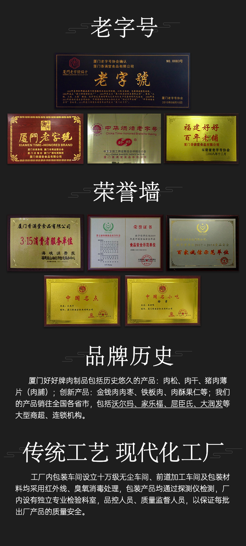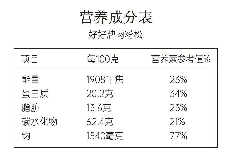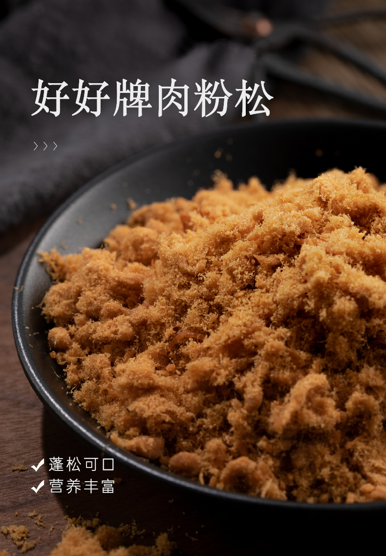 这款好好牌 金丝肉松,精选优质新鲜鸡肉和猪肉原料,采用先进设备和传统工艺精制而成,肉松味清香,色泽金黄,絮状松散,味道鲜美,甜咸适口,香味纯正。厦门香满堂食品有限公司是福建好好百年老铺,曾获中华烘焙老字号与厦门老字号之美誉。