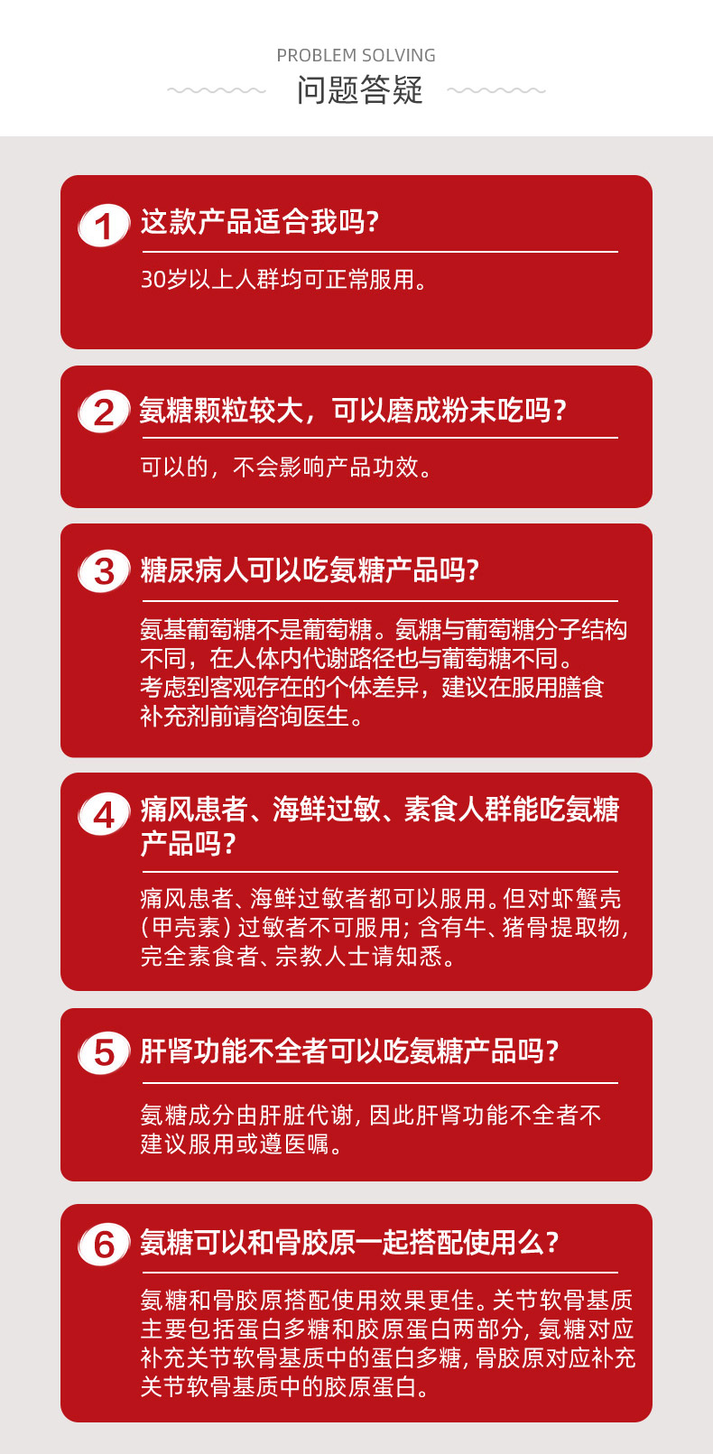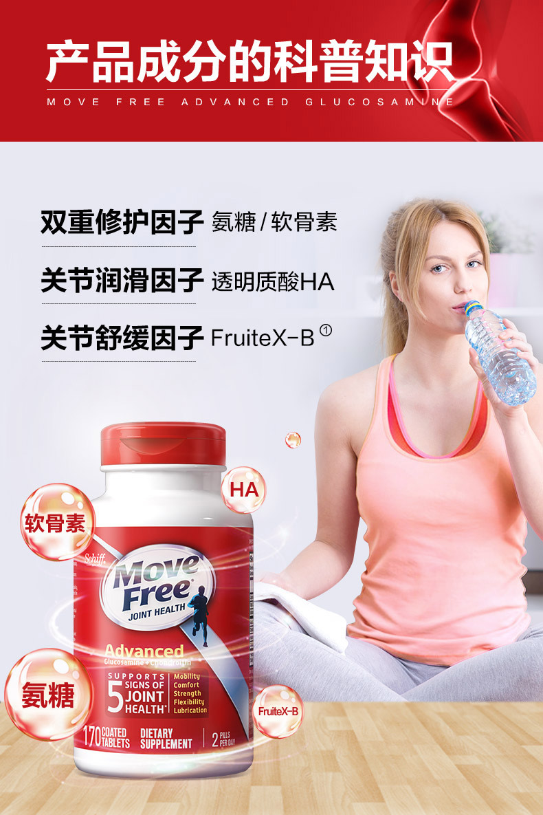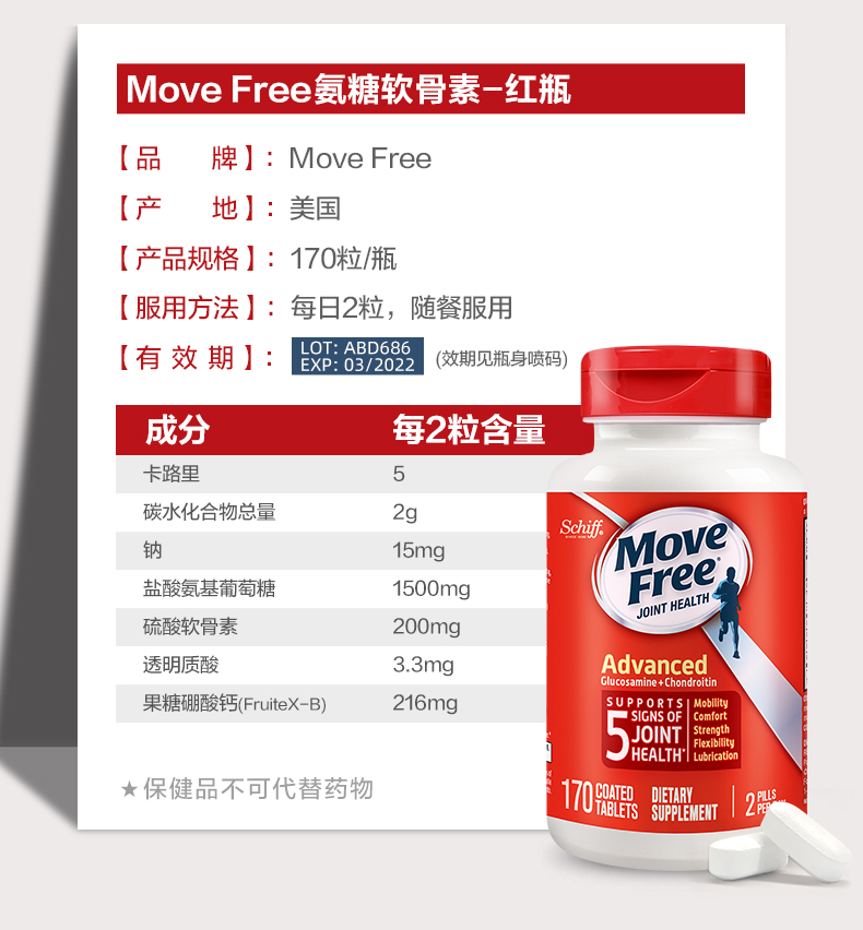 这款维骨力 氨基葡萄糖软骨素,是红盒,美国原产,作用是强化骨质骨骼,修补软骨组织,恢复关节活力,适用于关节轻度疼痛、运动损伤、劳动损伤的人,对于腰椎、手腕/关节、踝关节、膝关节、肘关节、颈椎均有效果;每日2粒,1次或多次随餐服用。