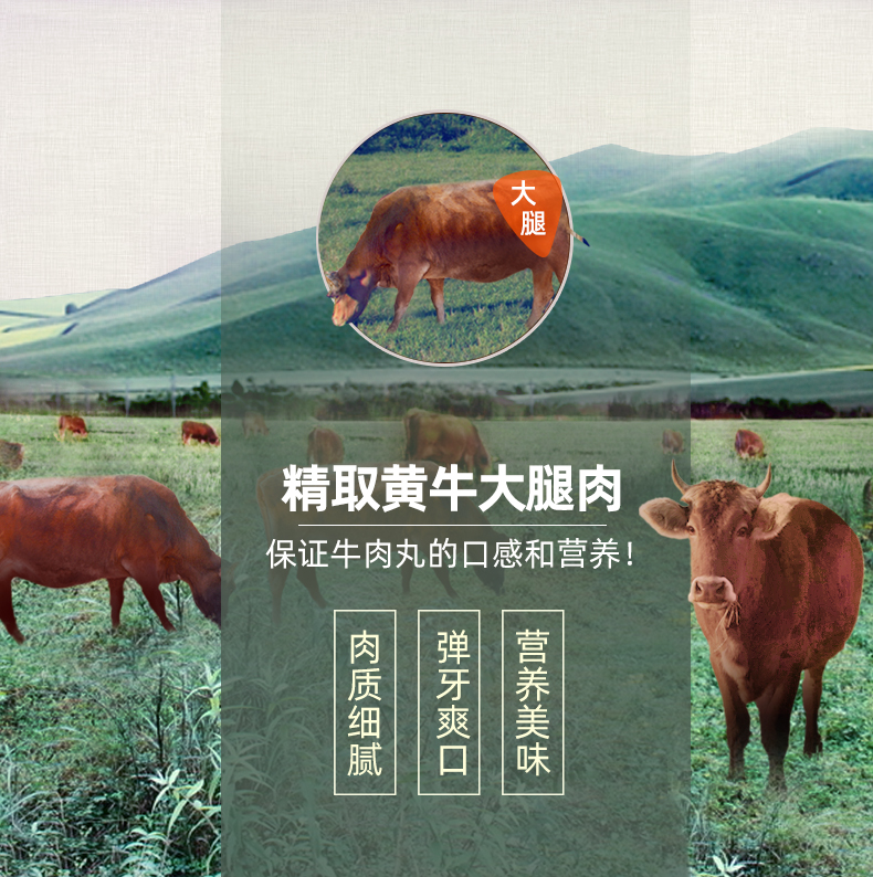 喜得佳 正宗潮汕 手打实心牛肉/牛筋丸,获得了香港Q唛认证,品质安全有保证。选用自然放养黄牛的新鲜后腿肉,纯手工捶打成酱,肉质细腻鲜嫩,Q弹多汁,爽口弹牙,能当乒乓球打,弹性非常之好(跟电影《食神》中的爆浆撒尿牛丸相似),不含硼砂、弹力素、防腐剂,口感筋道,爽口又弹牙。