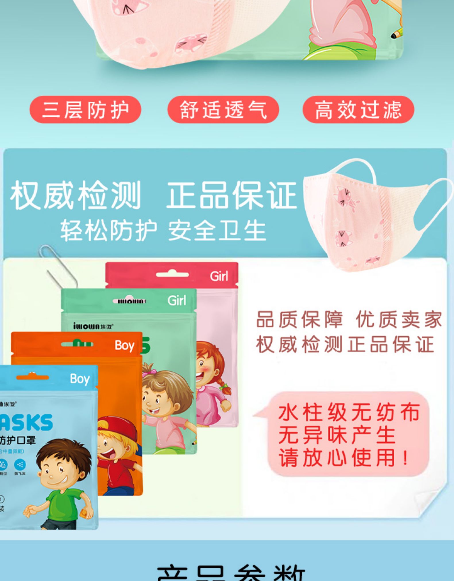 三层防护,有效阻止飞沫传播!含熔喷布过滤层,孩子必备!检测证书,产品资质齐全。价格不一定是很便宜,质量一定是比别人好领券链接点此