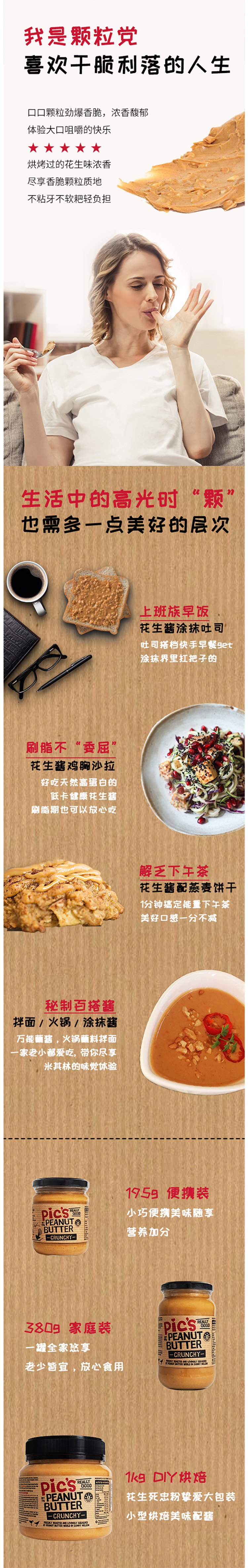 其实在国外,早餐有烤面包配花生酱的习惯,PICS不油不腻,吃着健康,这也是PICS畅销全球的重要原因之一。