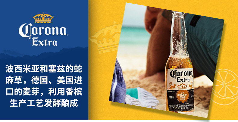 莫德罗啤酒公司位于墨西哥,创建于1925年,在当地有八家酒厂,年产量达到4100万吨,在本国的市场占有率达60%以上,科罗娜CORONA EXTRA是其主力产品,也是世界第五大啤酒品牌,并且每一瓶科罗娜啤酒都是在墨西哥境内酿成的。
