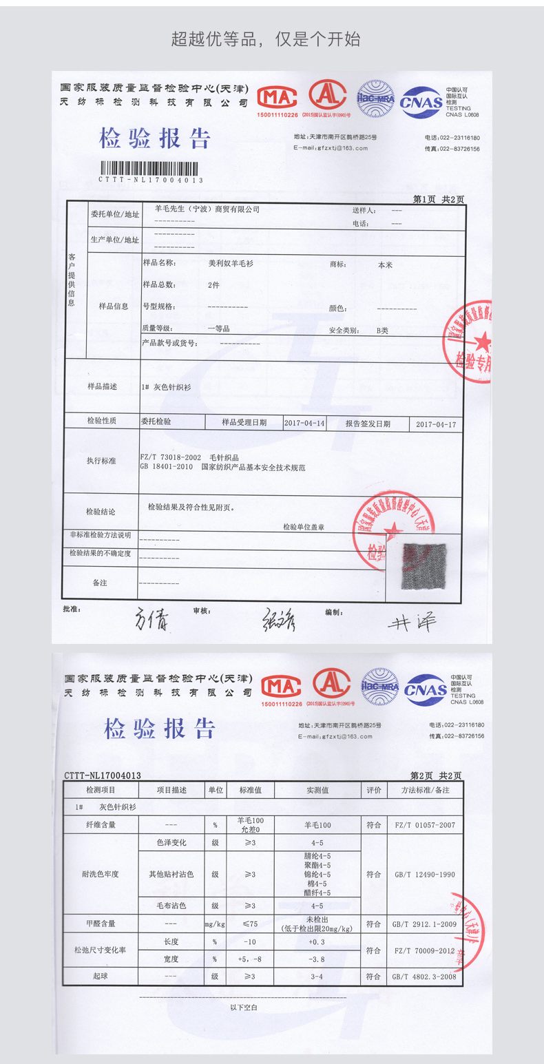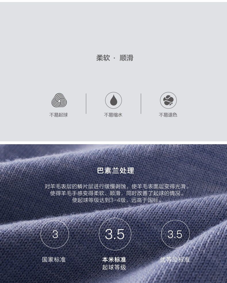 ▲此款选用小于18.5微米的超细美利奴羊毛