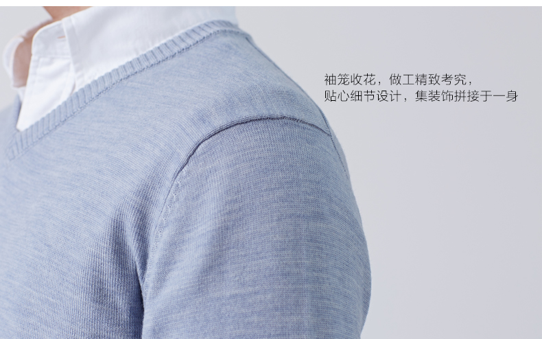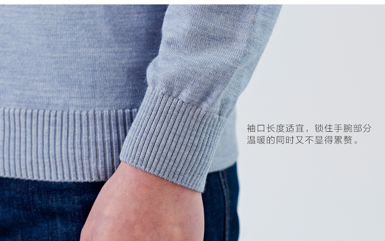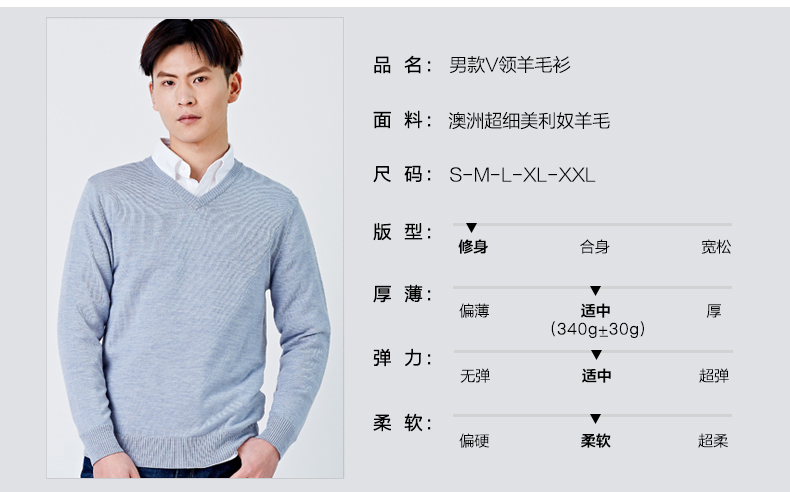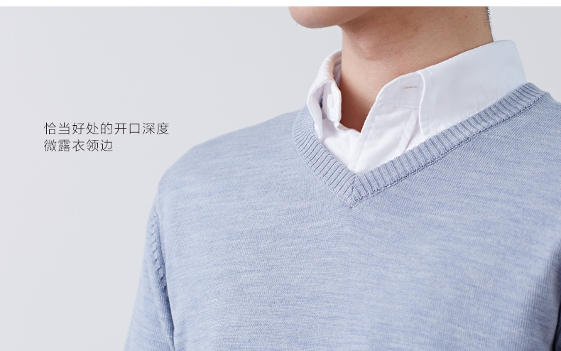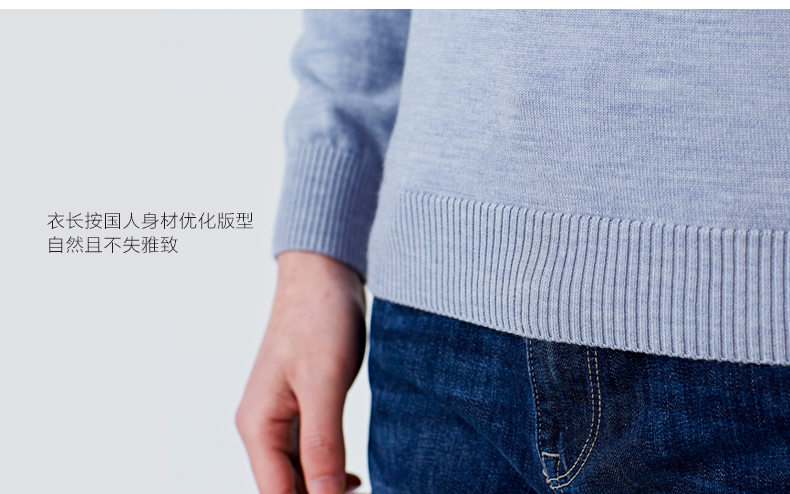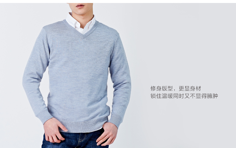 这款本米男士羊毛衫,采用纤维直径小于18.5微米的澳洲超细美利奴羊毛,比普通羊毛保暖不扎人,手感软糯顺滑。能吸收大量水蒸气并快速挥发,随着人体温变化而做出反应,寒冷时保温,炎热时候凉爽。V领一定程度上起到修饰脸型作用,方脸和圆脸的人穿起来会有明显“瘦脸”效果。