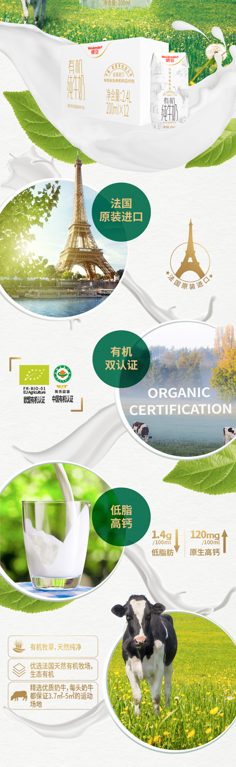 这款德亚 高端有机低脂高钙儿童早餐纯牛奶,规格:200ml*12盒,法国原装进口,中国欧盟双认证,一包一码全程溯源,1.4g/100ml低脂肪,120mg/100ml原生高钙;生产加工过程中绝无任何人工添加元素,乳蛋白含量高于35g/100g,其它多种营养元素含量更高,有益人体健康。