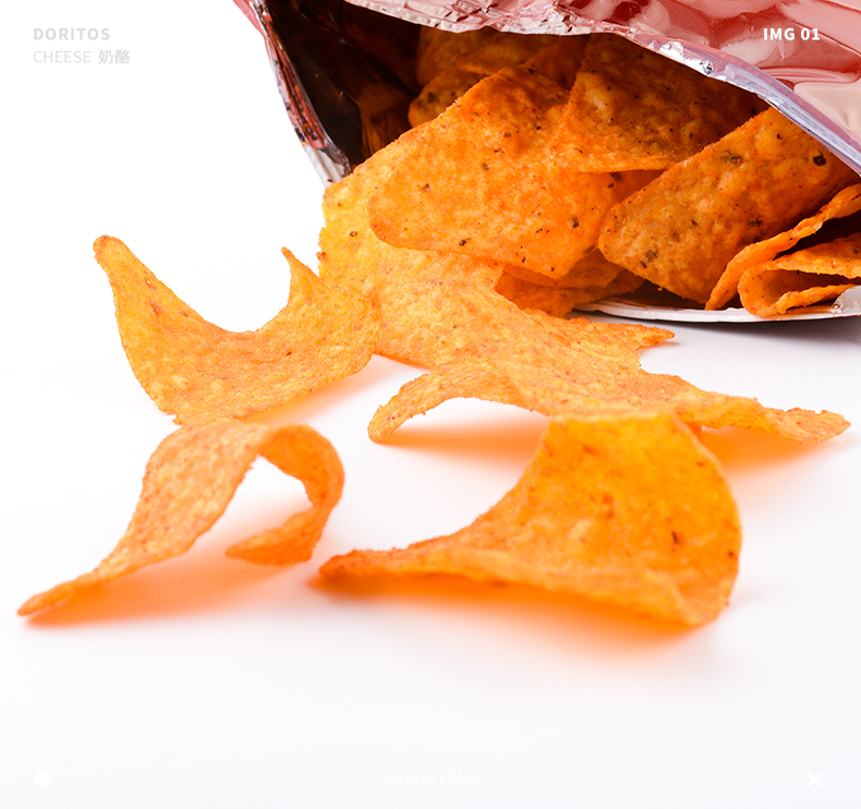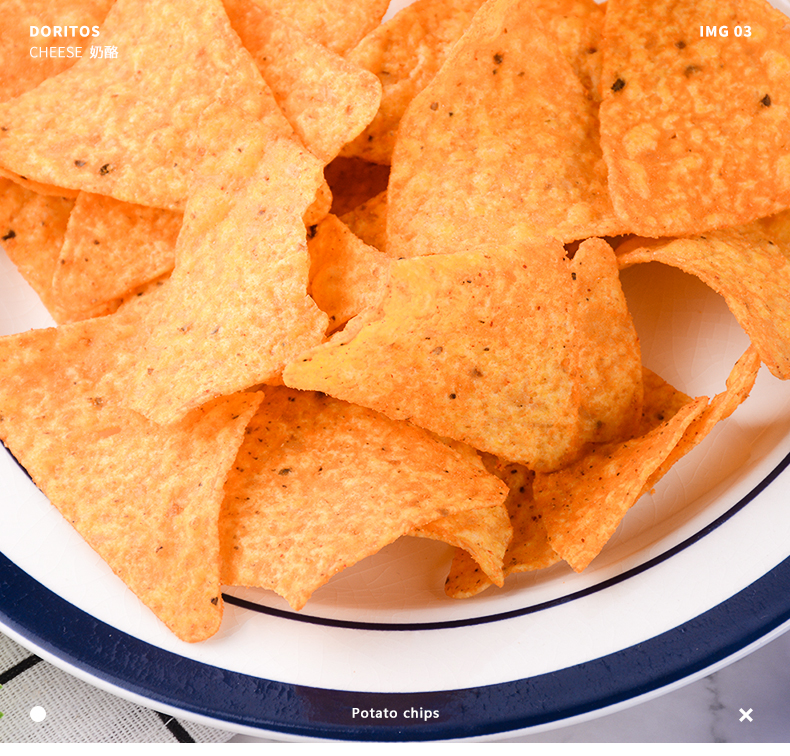 这款多力多滋玉米片是一款膨化薯片,使用本土优质玉米为原料,三角形状,香脆大片,入口咔吱咔吱脆。