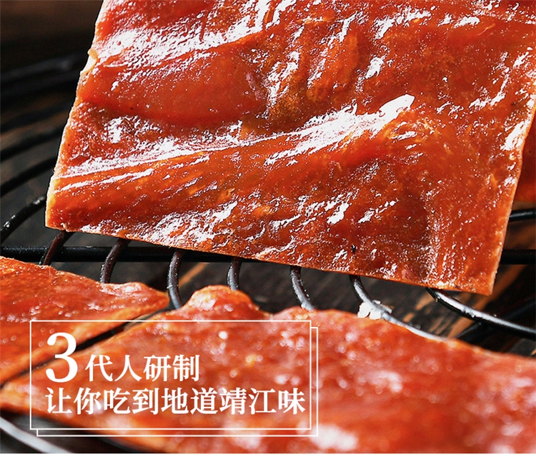 靖江网红小零食,特色猪肉干,精选猪后腿肉,4档温度快烤,8小时循环烘烤,入口香醇不腻,是老手艺才有的味道,地道靖江味,越嚼越香,资深吃货力荐