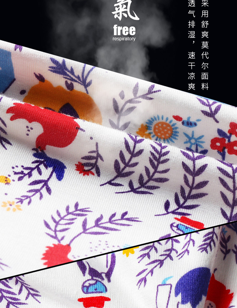 具有微弹性,上身不会太紧绷;有蛋囊,活性安全印染,环保健康,洗涤不掉色;一片式臀部设计,贴合曲线,舒适度高;微宽弹性腰带,无勒痕不易变形;裤脚是双车缝线不易开线。