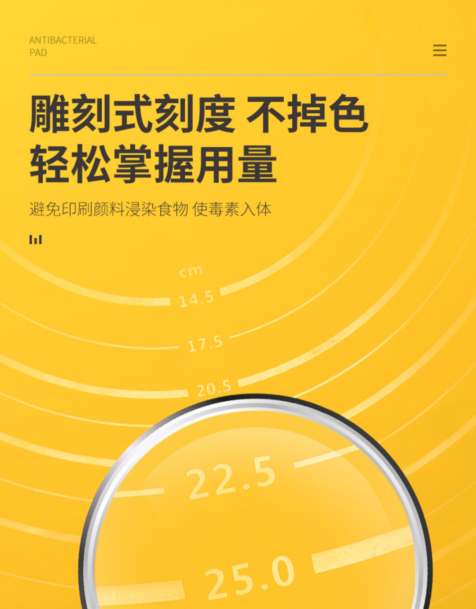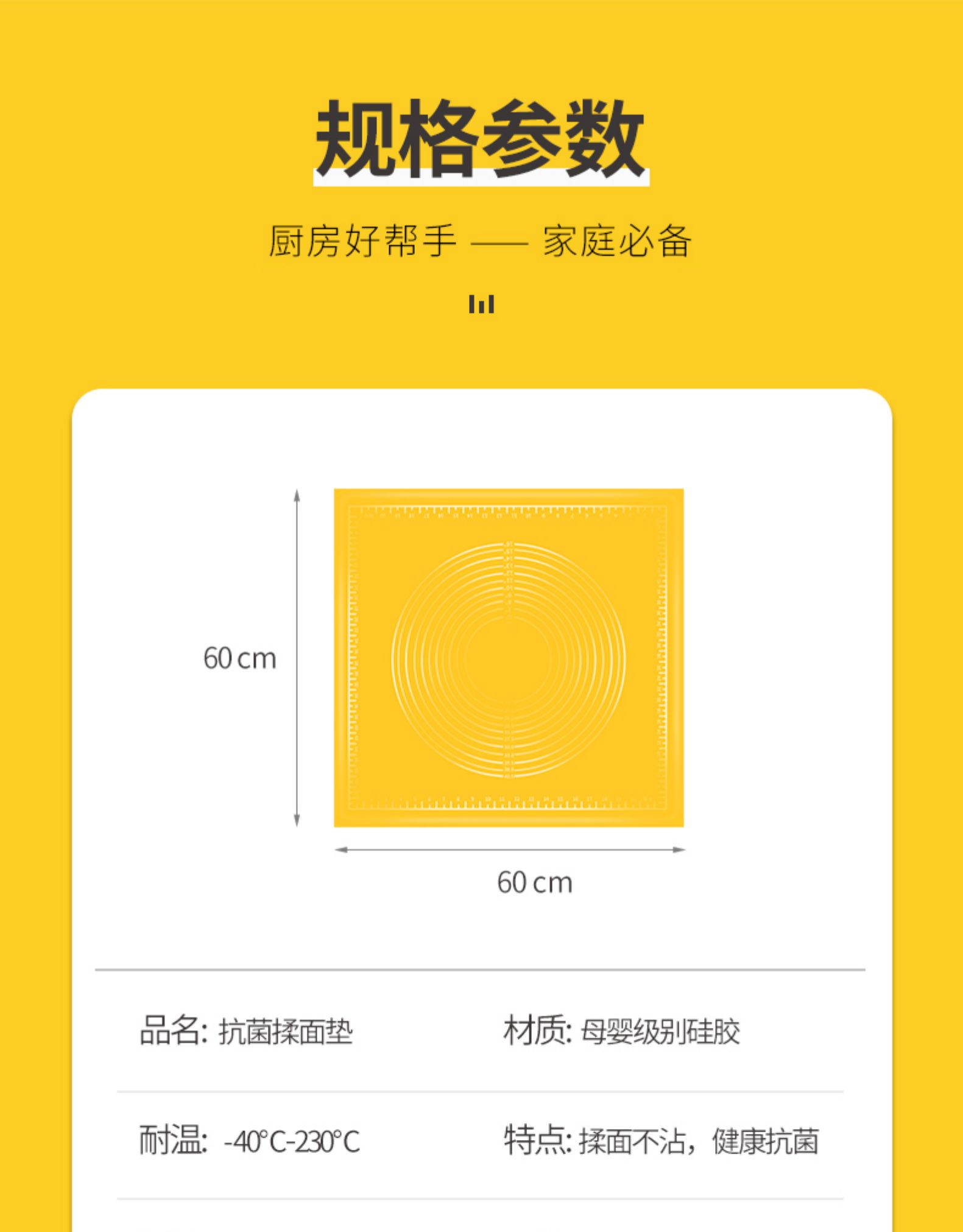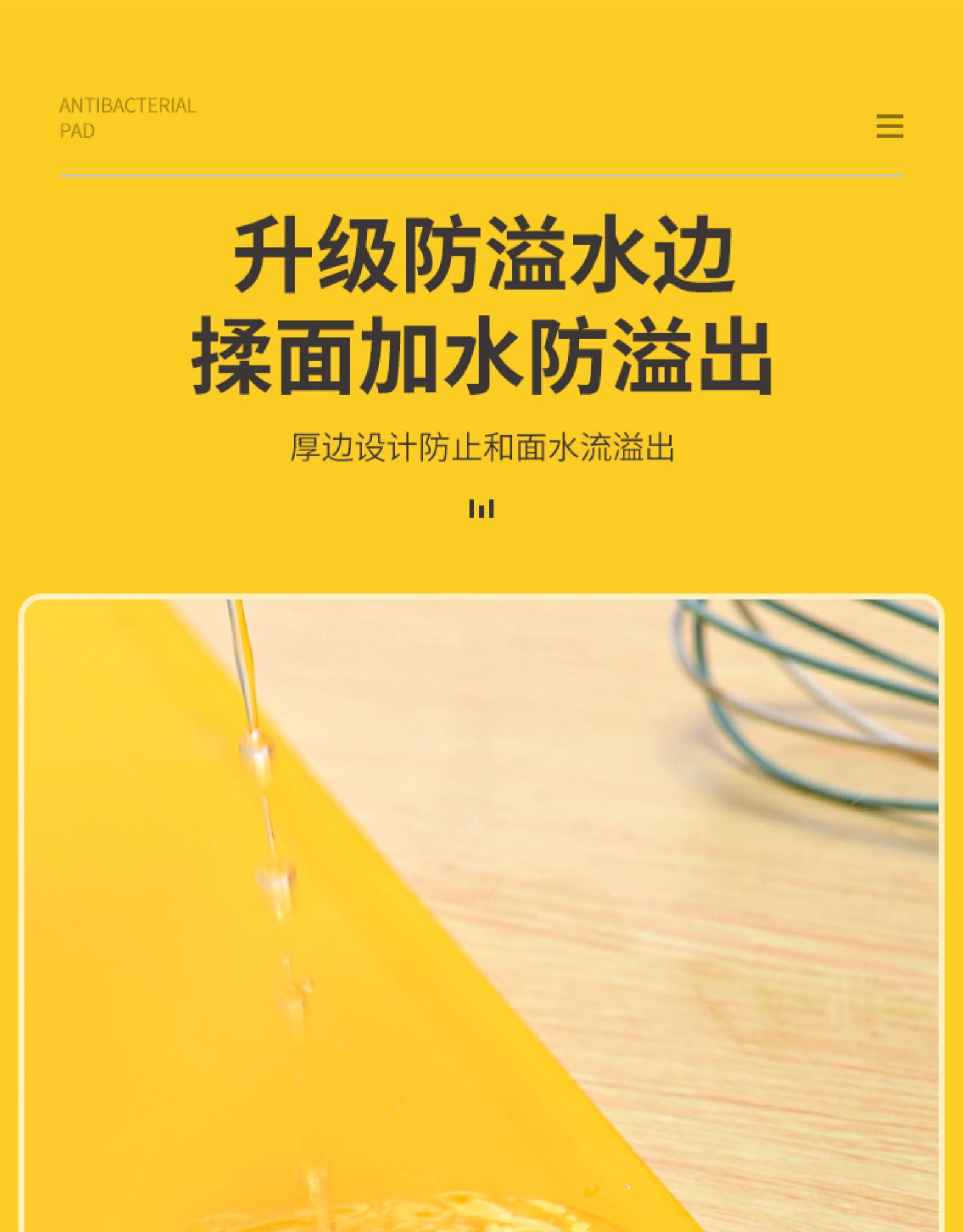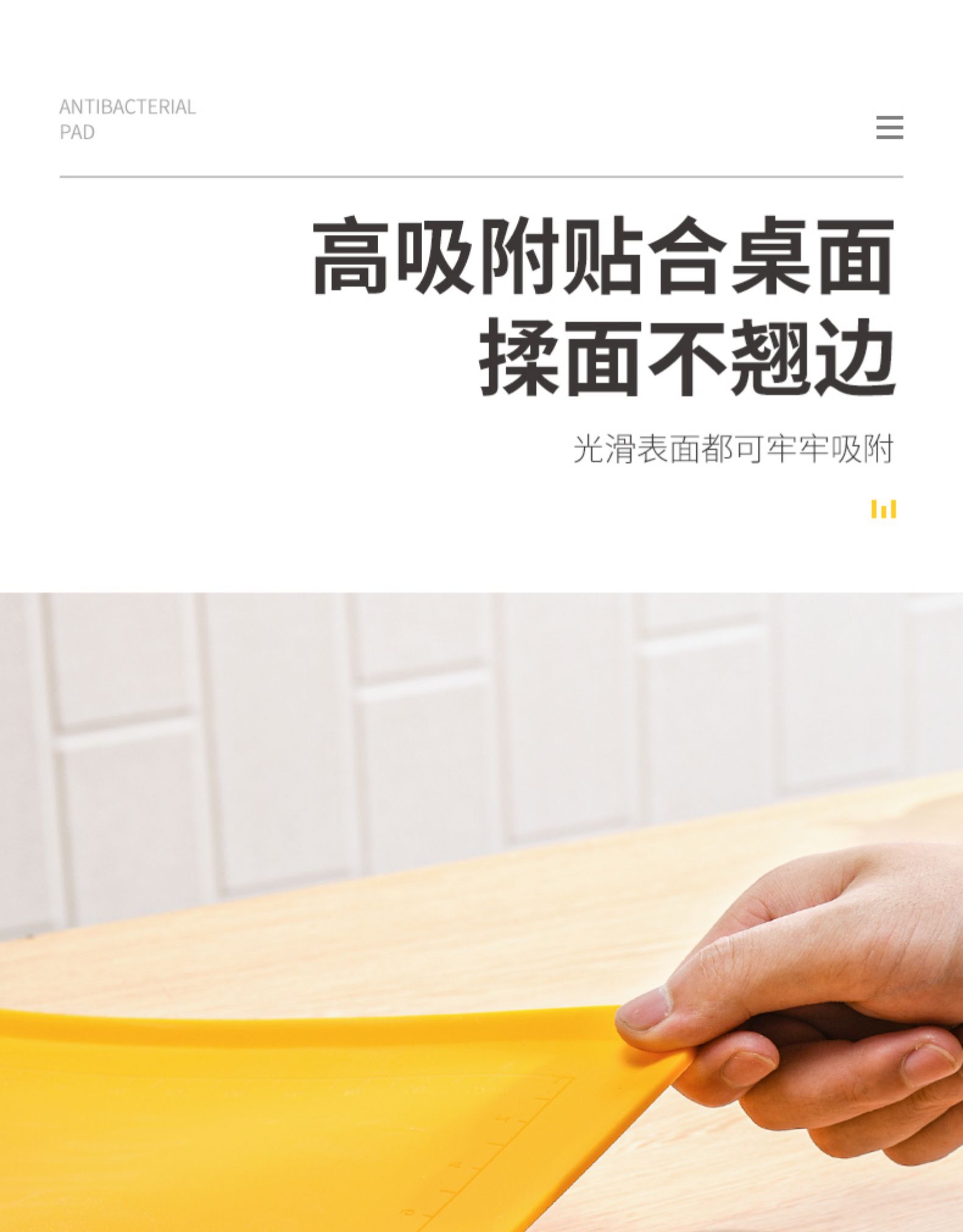升级防溢设计,周边加厚和面防止水流溢出,背面防滑吸附桌面稳定,坚韧耐用不易翘边。揉面垫带有雕刻式刻度,相比油墨印染不掉色、不侵染食物,方便掌握用量,烘焙、包饺子,制作面点随心所欲,让你拥有更大的施展空间,喜欢制作面点的朋友不容错过。(注:硅胶材质不易使用锋利刀具)