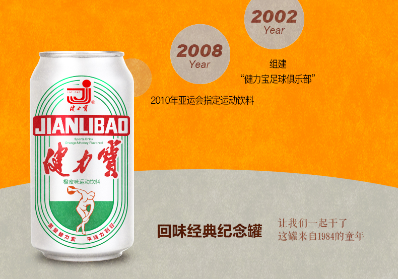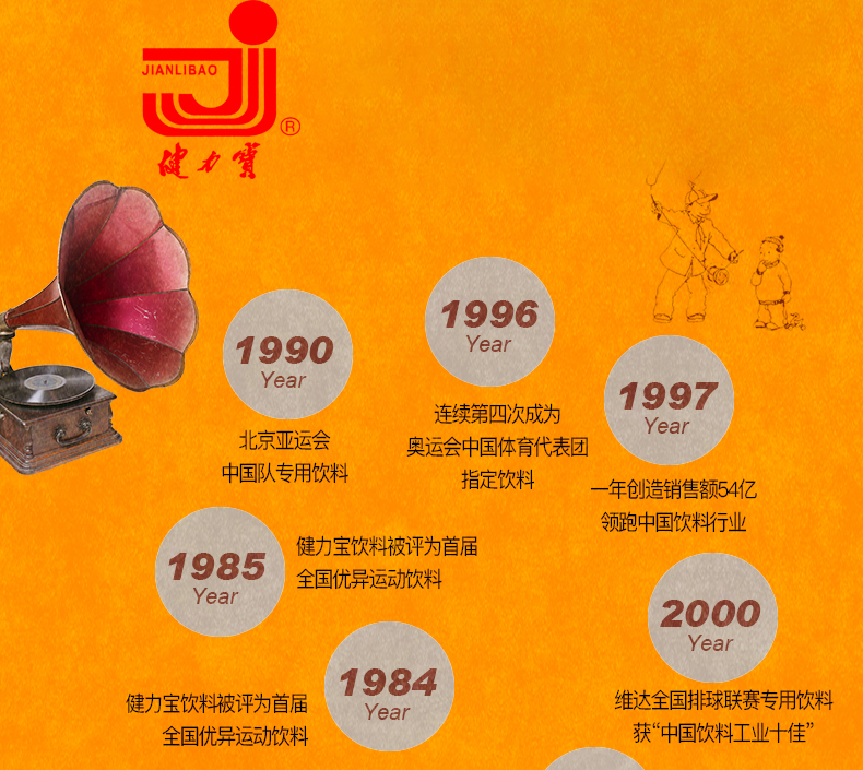 健力宝诞生于1984年,健力宝率先为国人引入运动饮料的概念。1984年洛杉矶奥运会后一炮走红,被国外媒体誉为“中国魔水”。1997年销售额54亿元,成为中国饮料业第一品牌;1984-1996年连续四届成为奥运会中国体育代表团首选饮料。