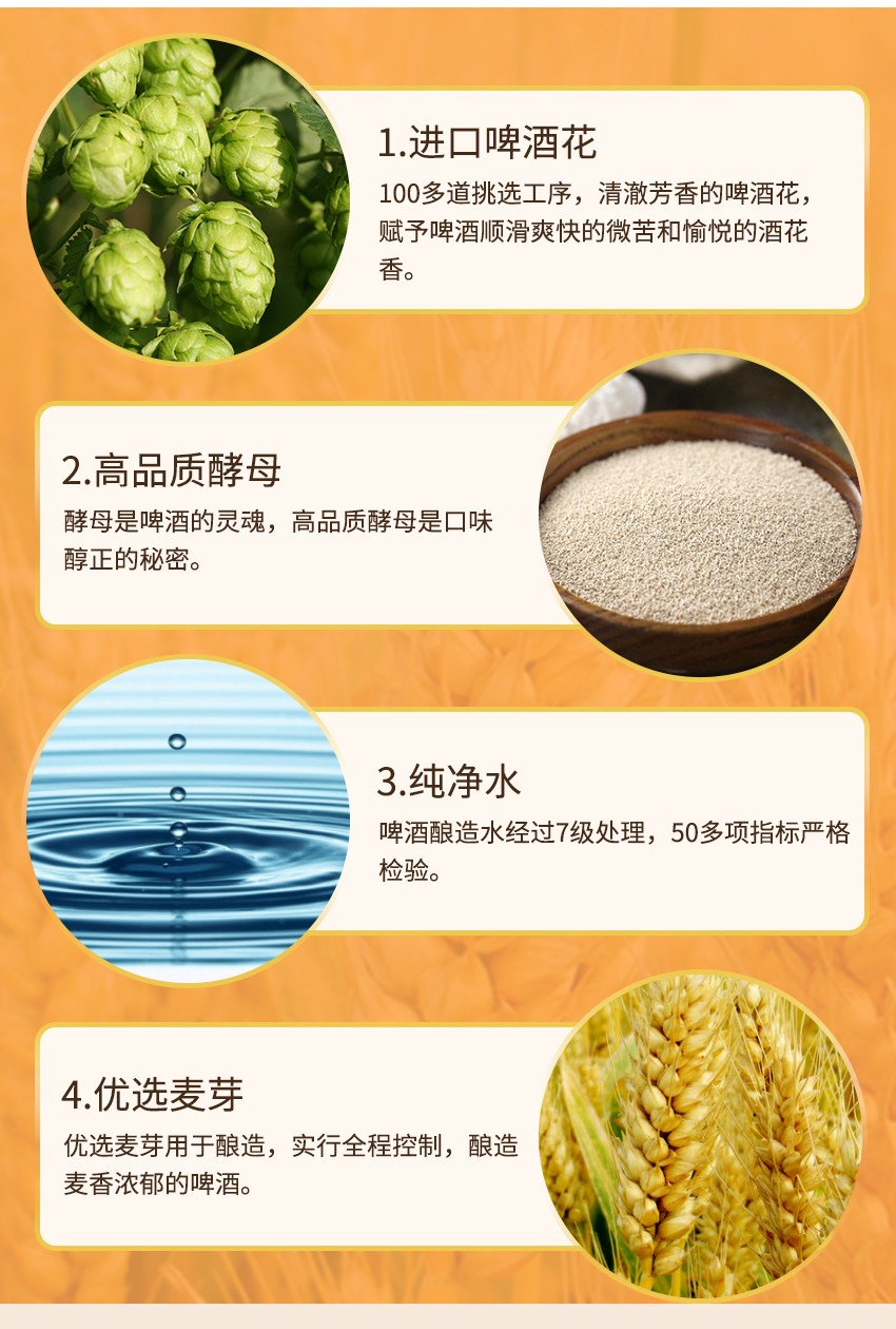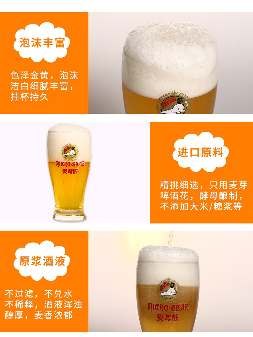 未经过滤保留了对人体有益的活性酵素,喝完也不头疼。使用双滴氮气罐装技术,真空填充,排空罐中的空气,确保啤酒的新鲜度。