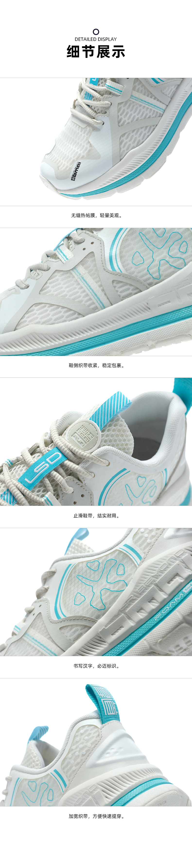 由TPU和大网眼三明治网布制成的透明纱鞋面,透气性好、包裹性强。还使用了3M反光材料,提升夜跑安全性。