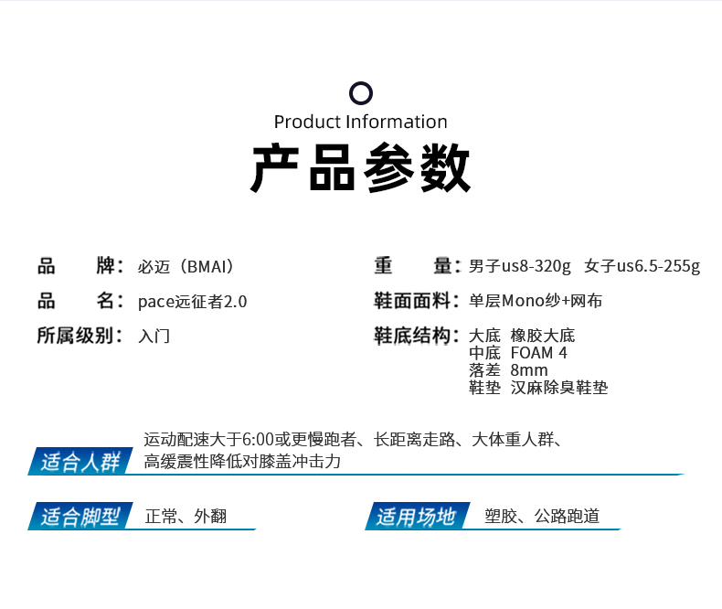 这款必迈远征者2.0是2020年的新款,是专为大体重人士设计,独家的厚底结构,缓震中底比平常跑鞋厚约1cm,可有效保护膝盖,是一款拥有强缓震的长距离护膝性慢速跑步鞋。