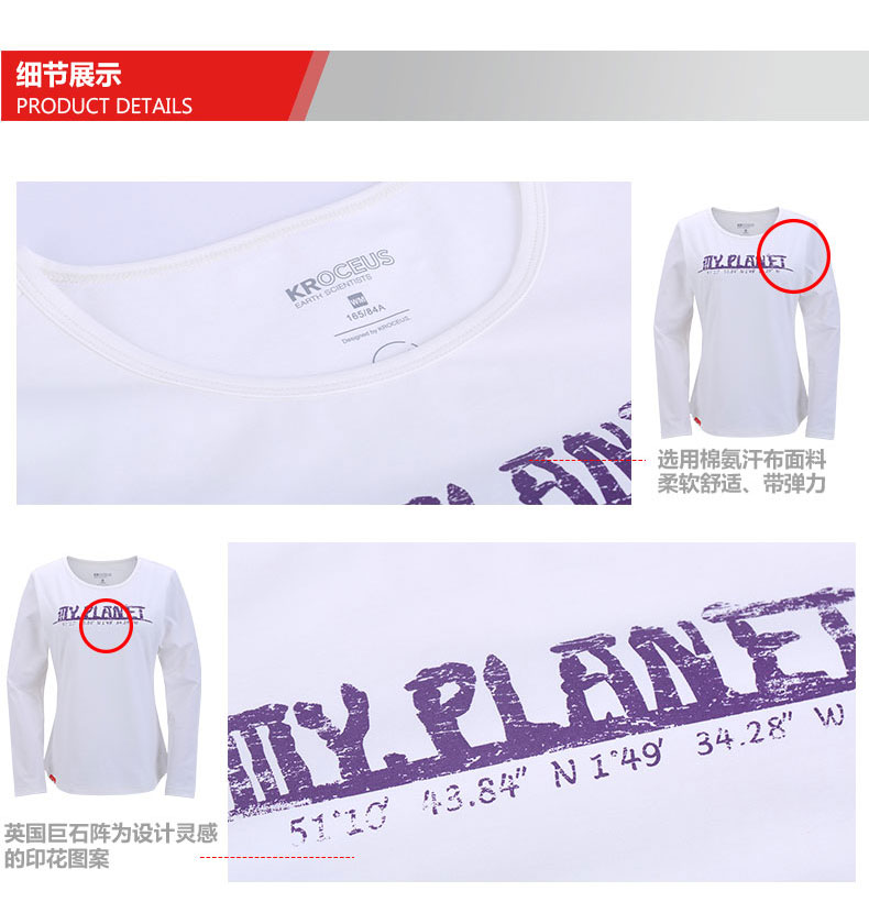这款地球科学家长袖T恤,采用棉氨汗布面料(93.9%棉+6.1%氨纶弹性纤维),摸起来的手感柔软,亲肤性好,吸湿有弹性,上身不紧绷。
