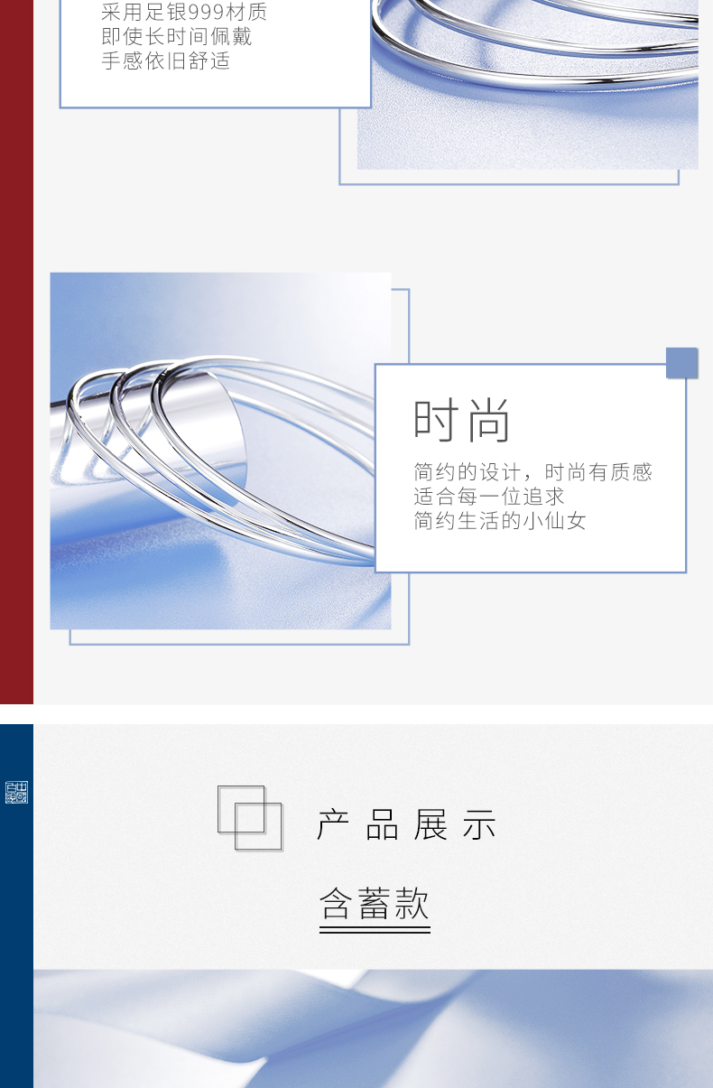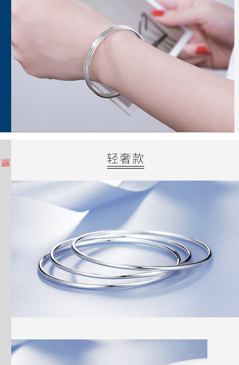 中国白银集团有限公司 女士999千足银手镯,不加以浓墨重彩,越繁杂而回归的自然美,别有韵味,表面经过抛光,轻奢又闪亮。千年古法手工银器,传承中华经典匠心精神。诠释优雅、质朴且精巧的银饰东方美学、成就质感美物,赋传统文化之魂。
